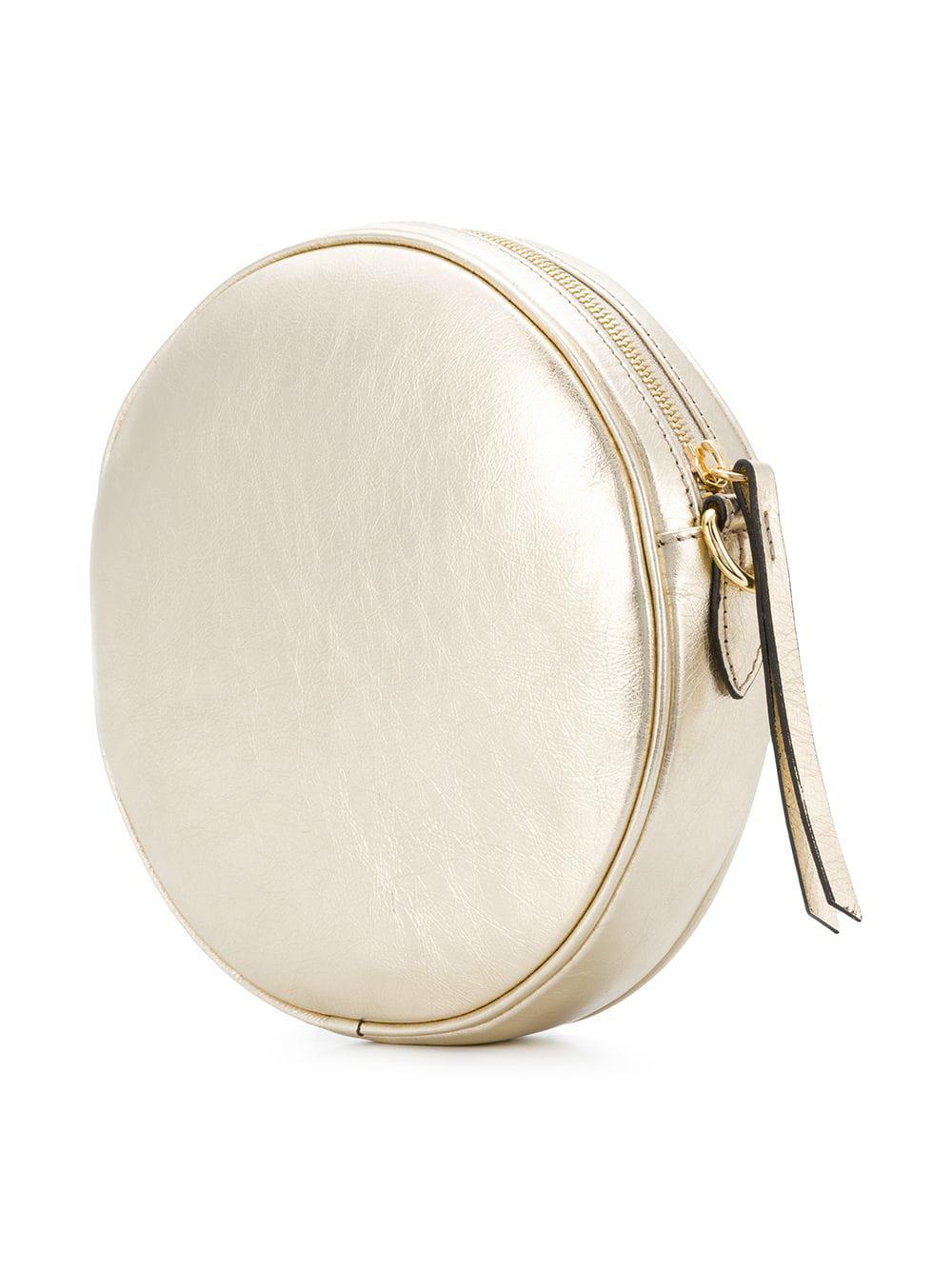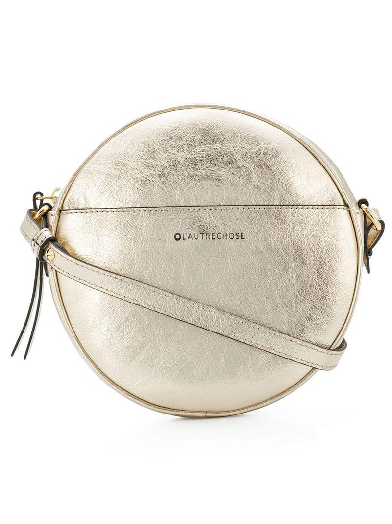 Metallic calf leather circular satchel bag from L'Autre Chose featuring a zip fastening and an adjustable shoulder strap. Material:Calf Leather. Colour: metallic