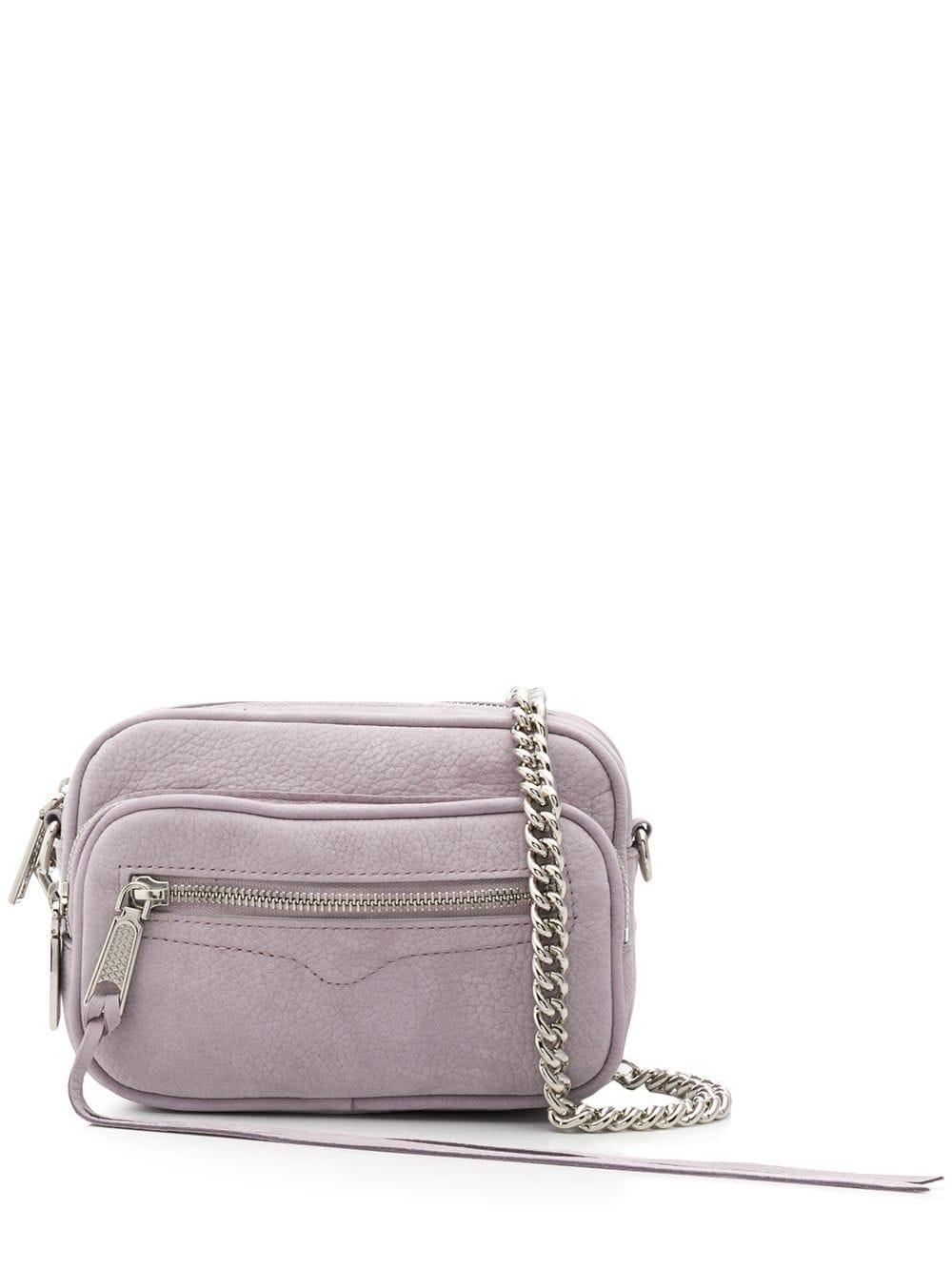 Go to FarfetchViolet leather Solstice camera bag from Rebecca Minkoff featuring a chain and leather strap, a top zip closure, a main internal compartment, a front zip compartment, a front zip pocket and silver-tone hardware. Material:Leather. This item may not be on sale in France, UK, Italy, Belgium and Switzerland. Colour: pink
