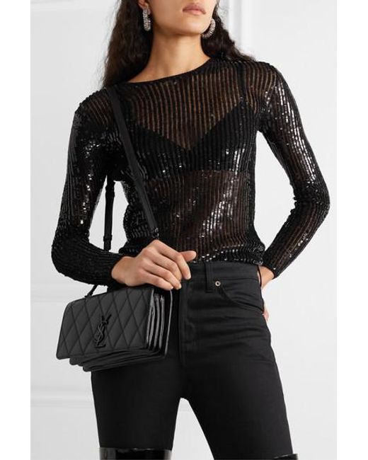 Made in Italy from buttery leather, SAINT LAURENT's 'Angie' bag is softly quilted and has a slim, rectangular profile. It has an adjustable shoulder strap and three zipped compartments so you can easily separate your phone, purse and makeup essentials. A piece this classic goes with everything, but it looks especially chic as part of a monochrome outfit. Colour: black