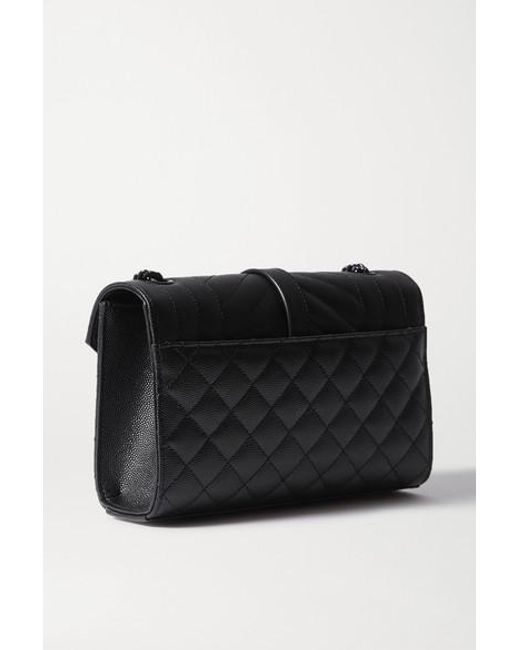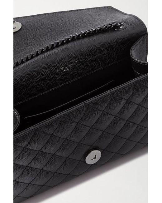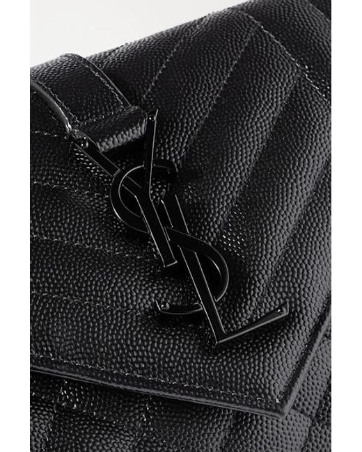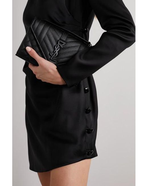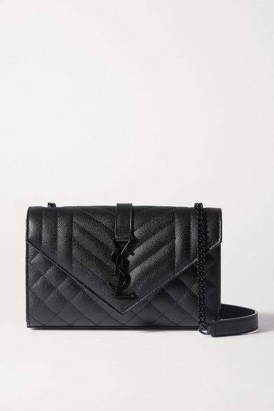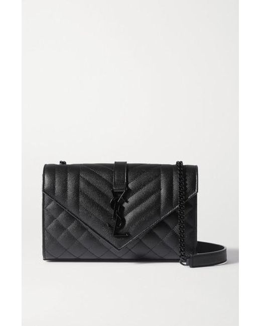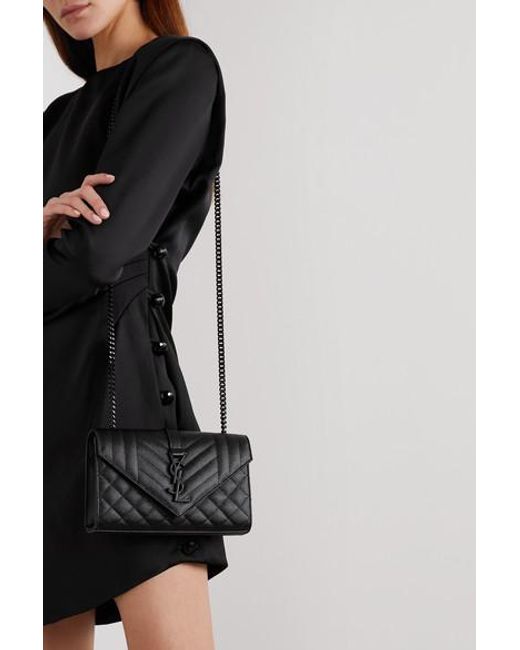 This small version of SAINT LAURENT's 'Envelope' bag is sized to store just the essentials. Made in Italy from quilted textured-leather, it has a black metal chain strap to match the iconic 'YSL' logo and opens to reveal a convenient card slot. Use the slip pocket at the back to keep your phone close to hand. Colour: black