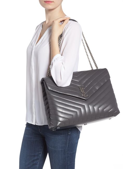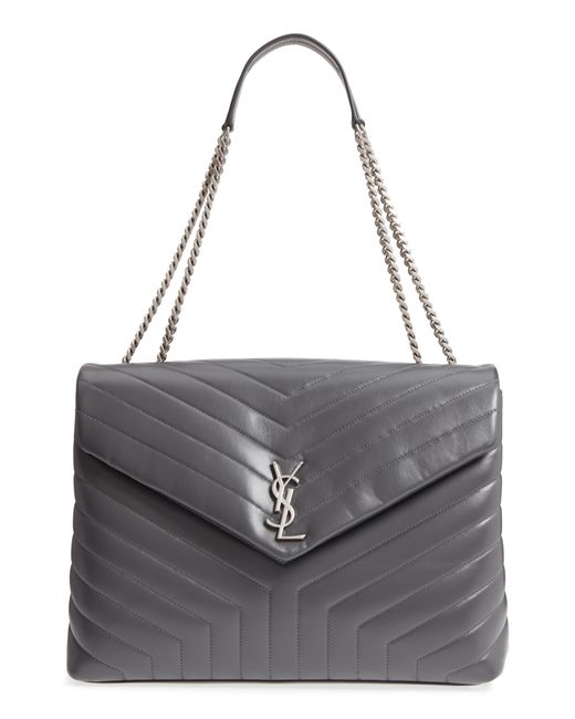 Women's Gray Large Loulou Matelassé Leather Shoulder Bag