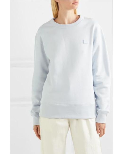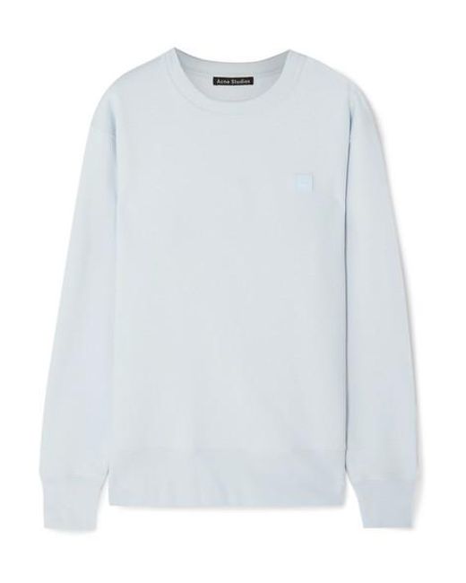 Acne Studios' sweatshirt is appliquéd with the signature 'Fairview Face' motif. We love how it manages to be whimsical and minimal at the same time. Cut from the softest cotton-jersey, it has a relaxed fit and a classic crew-neck silhouette. The sky-blue hue is practically a neutral, so it'll team well with all washes of denim. Colour: blue