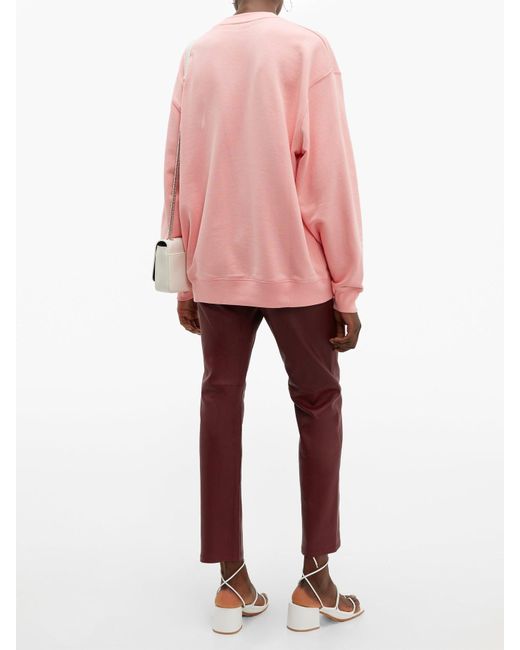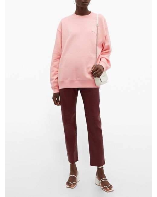 Acne studios - acne studios' face logo is inspired by the resting expression of a scandinavian man, and it adorns the chest of this pastel-pink fairview sweatshirt. Cut to an oversized silhouette in loopback-cotton jersey, it's equally breathable and warm, finished simply with rib-knit trims. Team it with contrasting trousers for a contemporary edit. 100% cotton.