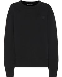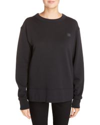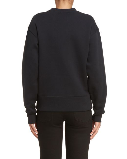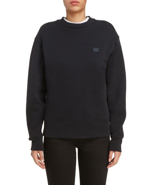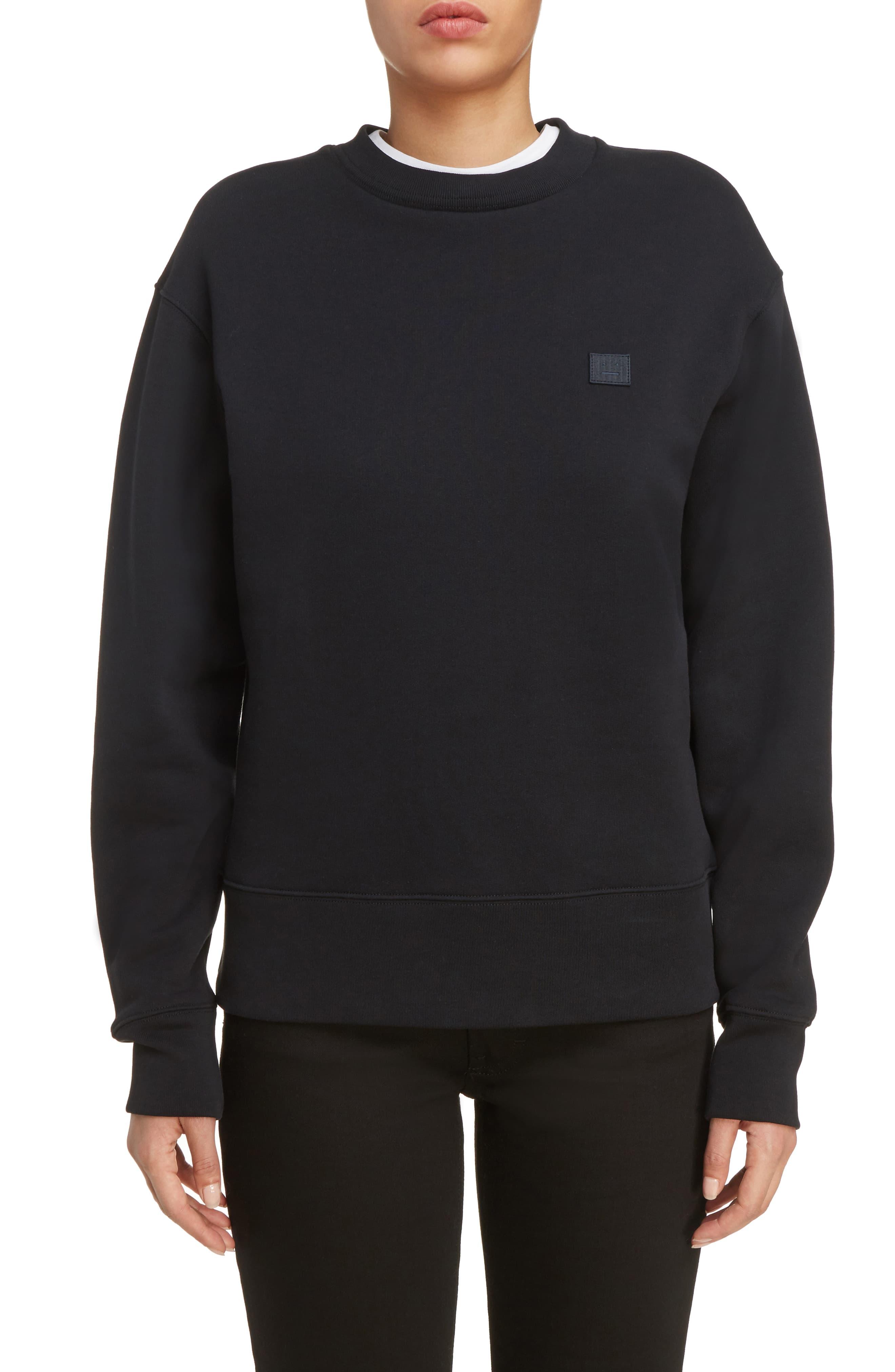 An embroidered face patch puts a subtly whimsical twist on a slouchy crewneck sweatshirt cut from soft cotton terry. Colour: black