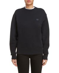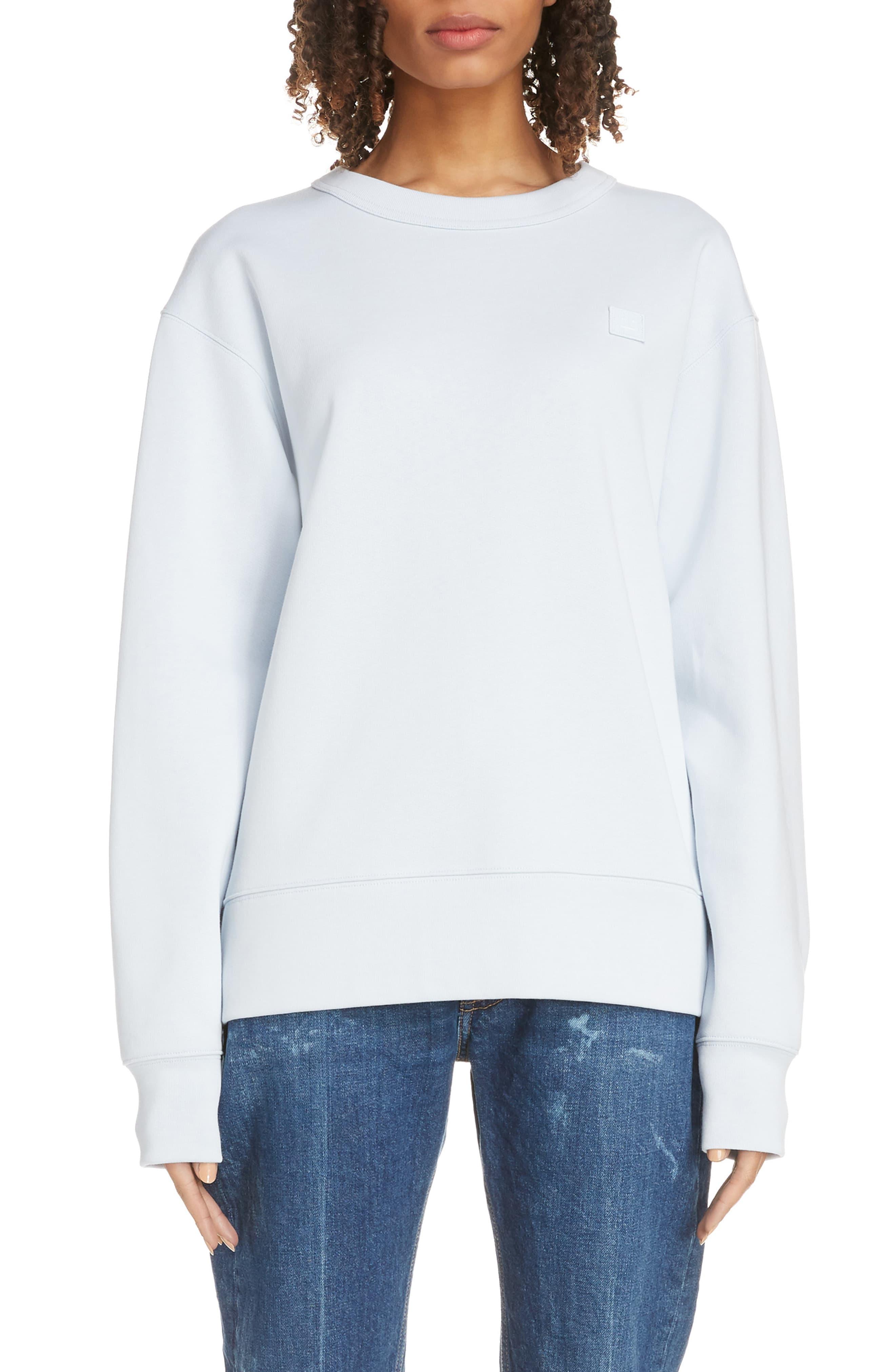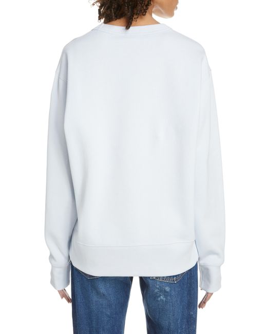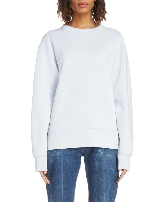 An embroidered face patch puts a subtly whimsical twist on a slouchy crewneck sweatshirt cut from soft, cotton French terry. Colour: blue