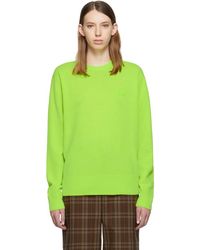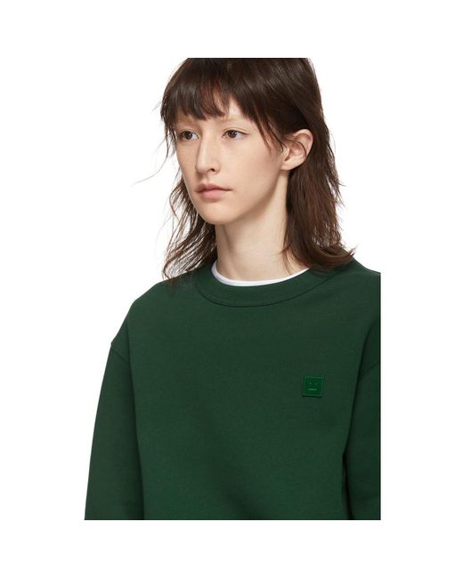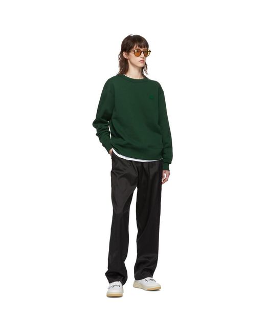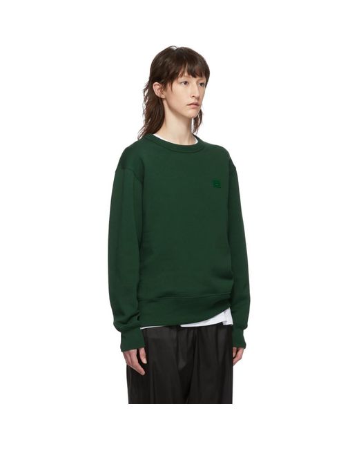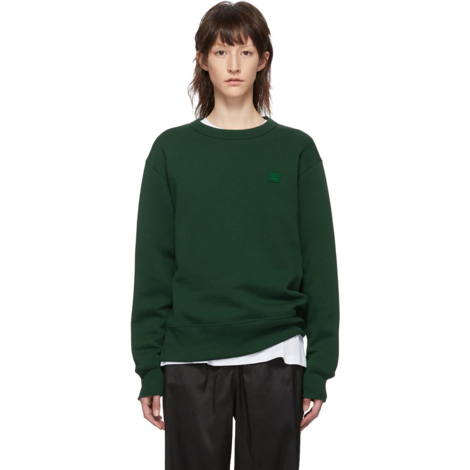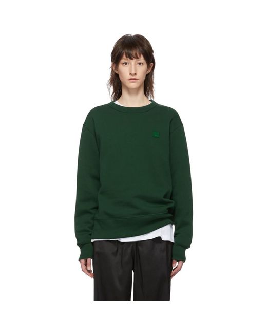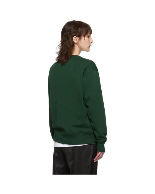 Long sleeve medium weight cotton fleece sweatshirt in dark green. Rib knit crewneck collar, cuffs, and hem. Tonal signature embroidered graphic applique at chest. Colour: green