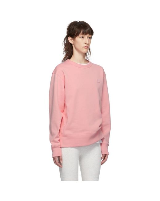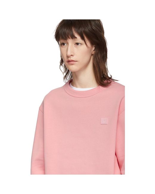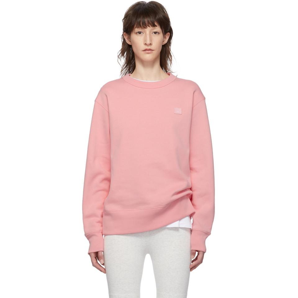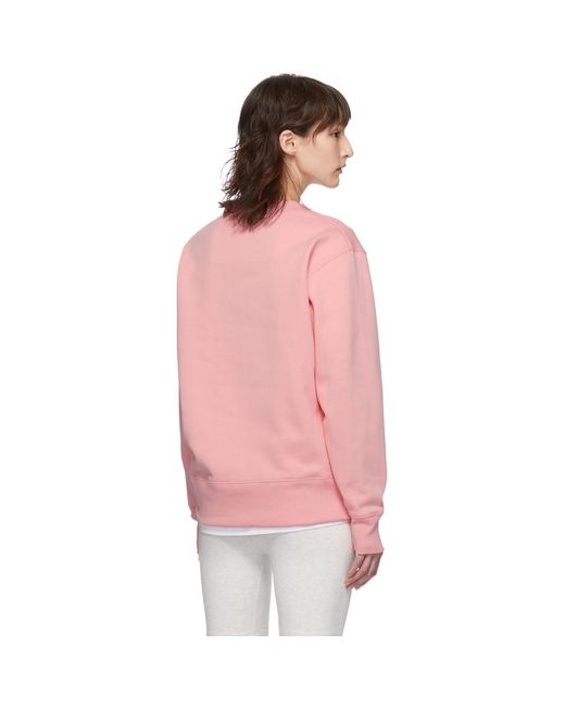 Long sleeve medium weight cotton fleece sweatshirt in pink. Rib knit crewneck collar, cuffs, and hem. Tonal signature embroidered graphic applique at chest. Colour: pink