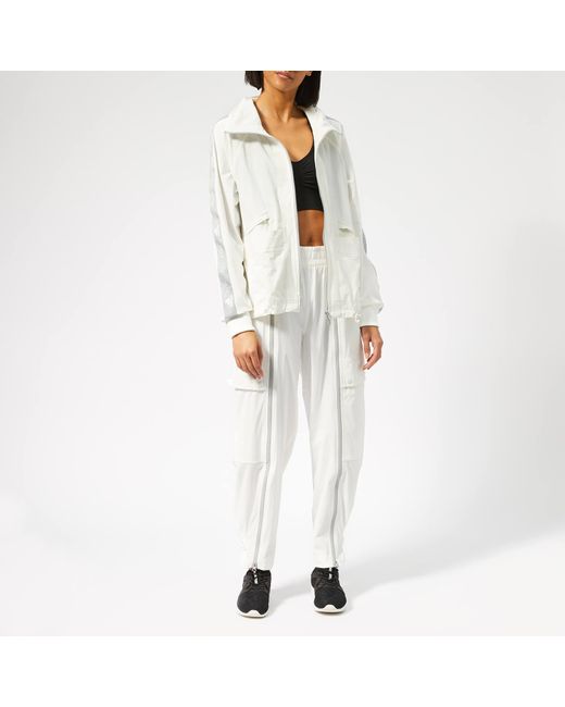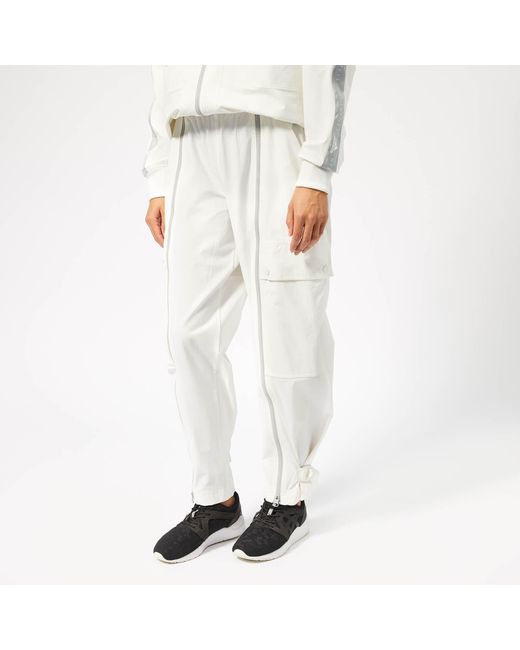 Part of Stella McCartney's capsule collection for adidas, the tracksuit pants are cut with a loose tapered leg. The flattering high waist pants feature cargo style pockets and are accessorised with full-length zips down the centre of each leg. The track pants are created with a low-carbon footprint from recycled polyamide, in keeping with the brand's eco-friendly ethos. 91% Recycled Polyamide, 9% Elastane Model is 174cm/5'8.5 and wears a size S. Colour: white