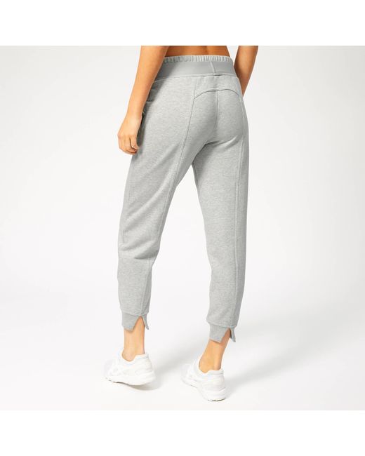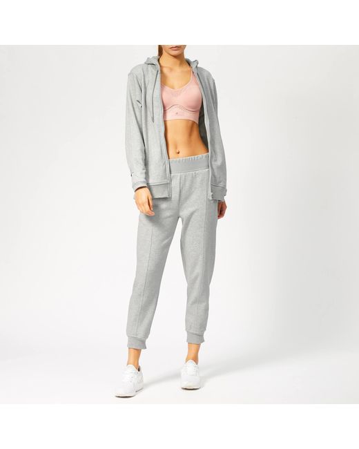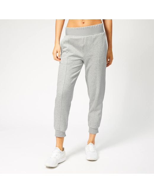 Adidas 'Essential' sweatpants designed in collaboration with English fashion designer, Stella McCartney. Crafted from cotton-blend jersey fabric with tonal seam detailing throughout to create a subtly tailored aesthetic. The mid-rise sweatpants feature a double elasticated waistband, side pockets and rib-knit split cuffs. Logo branding lends a signature finish. 70% Cotton, 30% PolyesterModel is 180cm/5'11 and wears a size S. Colour: grey