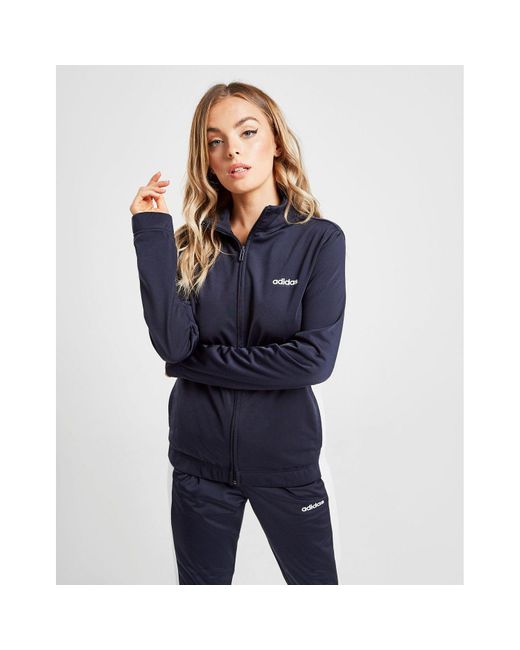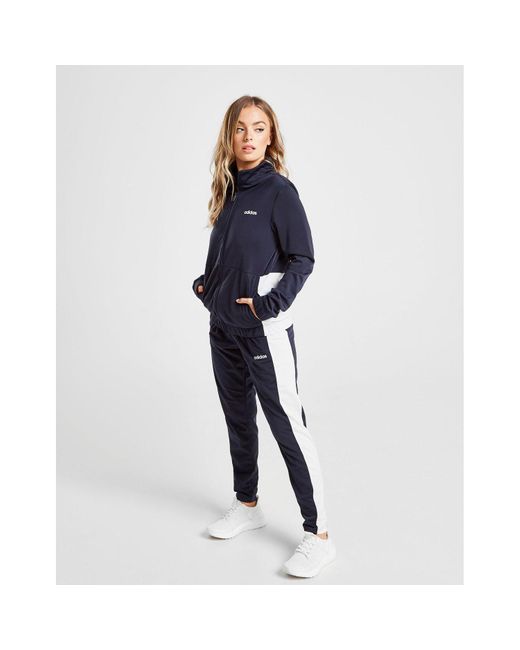 Suit up and keep comf in this women's Core Colour Block Tracksuit from adidas. In a navy and white colourway, this regular-fit suit is made from smooth poly fabric for easy, off-duty comfort. It comes with a full zip track top with elasticated trims to optimize the fit, as well as matching pants for a head to toe look. With multiple pockets for a relaxed vibe, this tracksuit is finished with signature adidas branding to the chest and thigh. Our model is 5'5" and wears a size 8. Material: 100% Polyester. Colour: blue