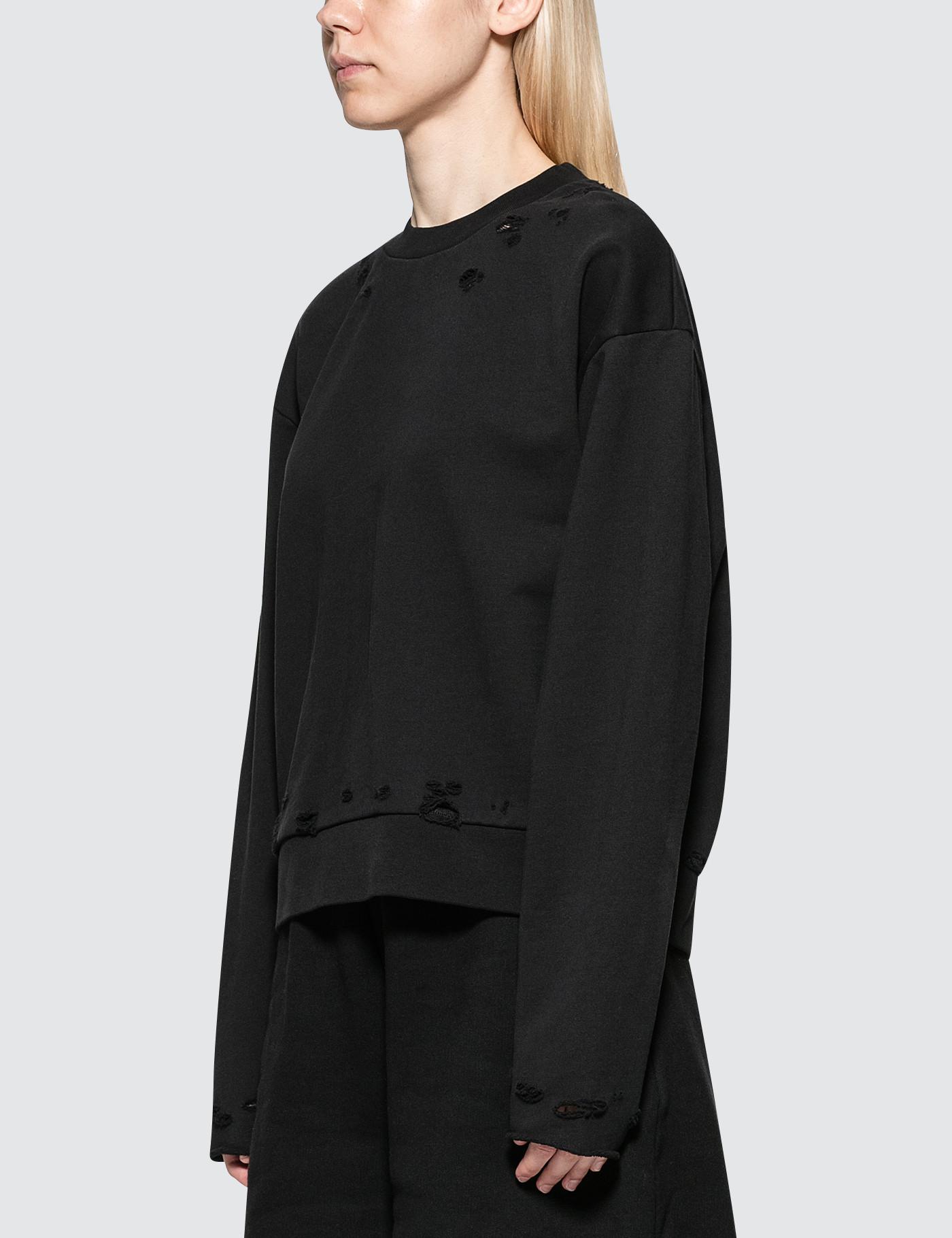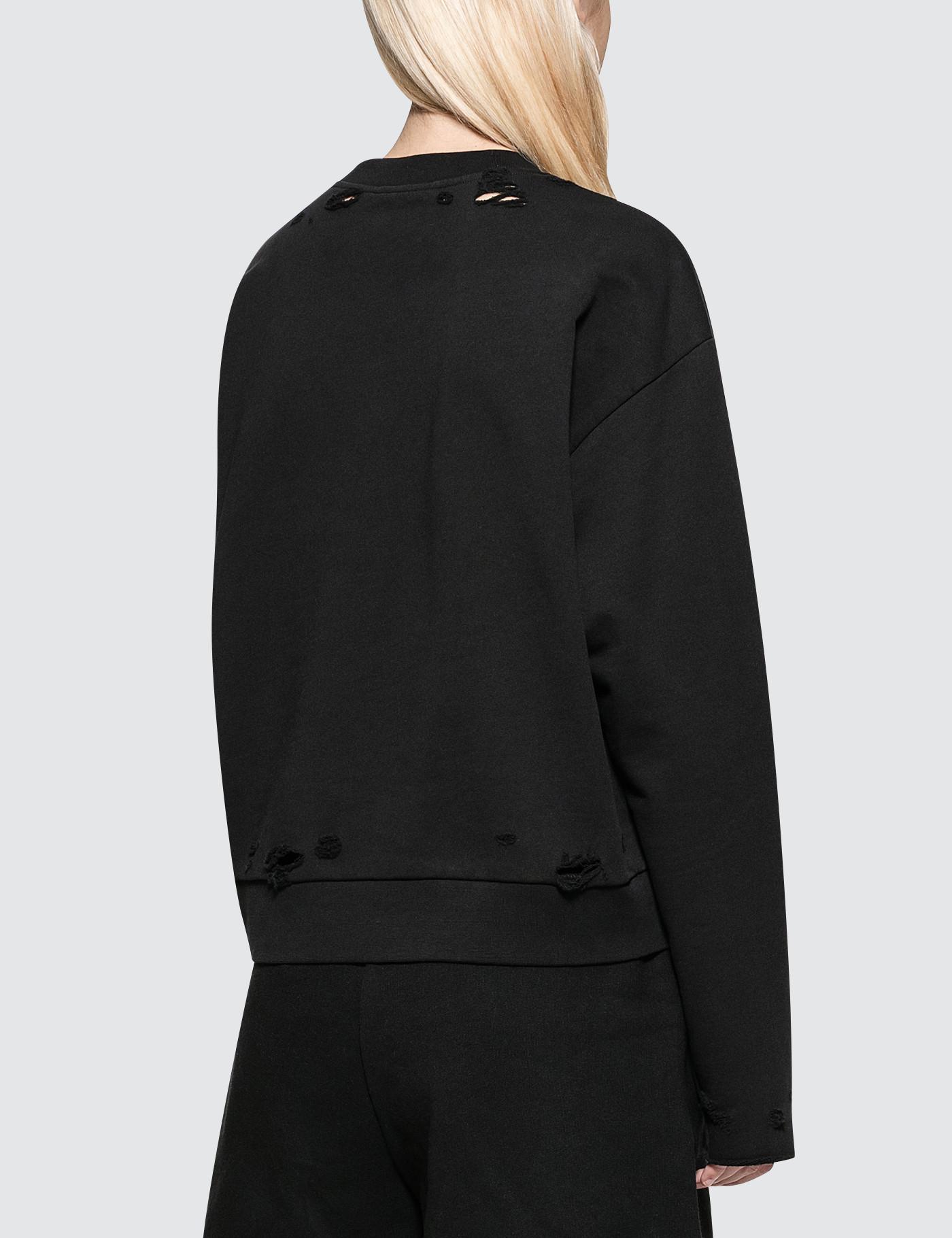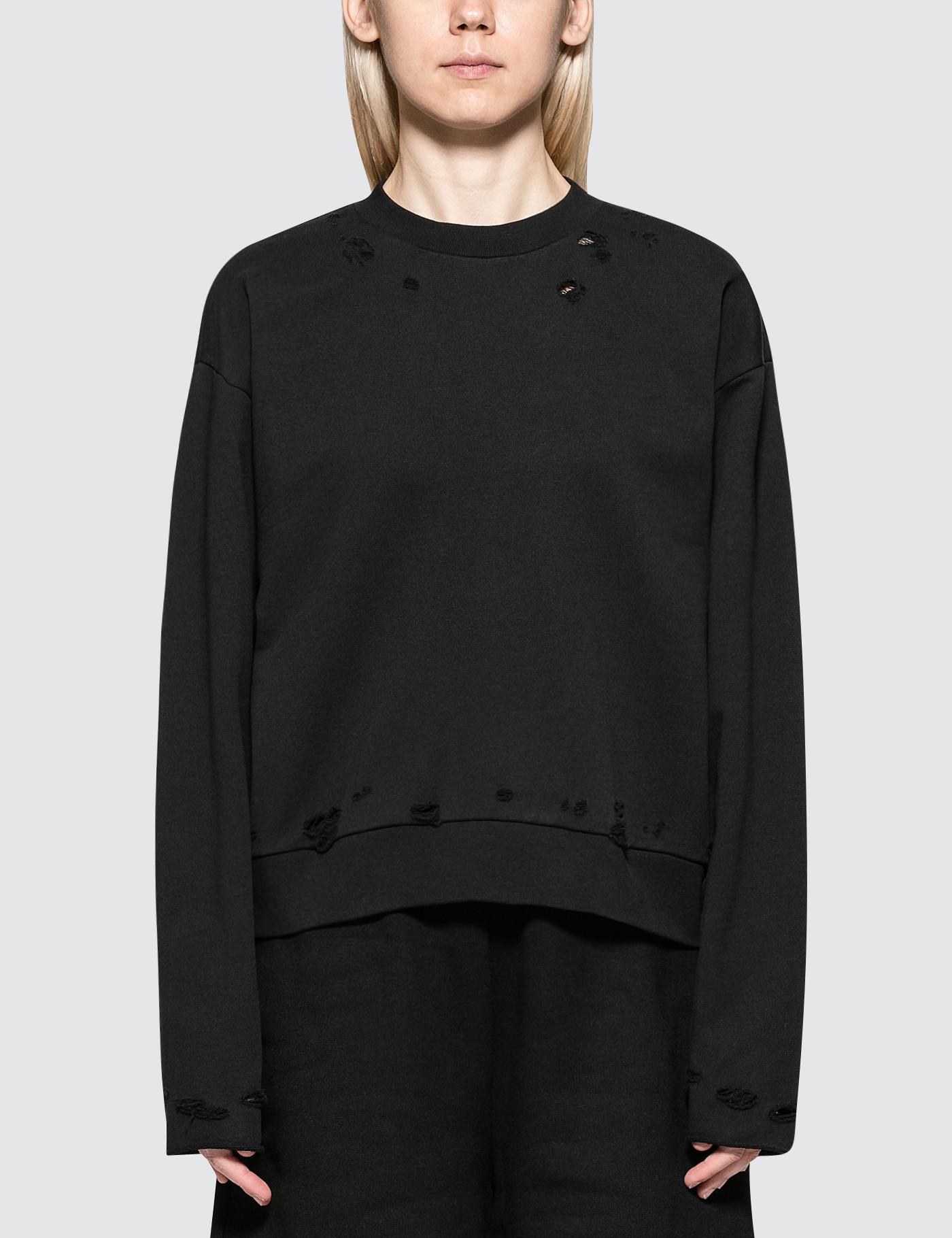 Go to HBXChampion of downtown chic Alexander Wang founded his namesake line in 2004 at age 19, debuting at New York Fashion Week in 2007. His nonchalant, urban aesthetic has been highly praised in the fashion world - winning him a GQ Menswear Designer of the Year award in 2011, the same year he launched his first men's collection - and the CFDA Vogue Fashion Fund award in 2008 for his provocative yet refined womenswear. Long sleeve- Crewneck - Distressed detail- Ribbed collar and hem- 100% Cotton. Colour: black