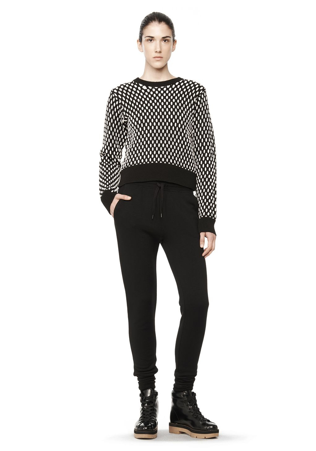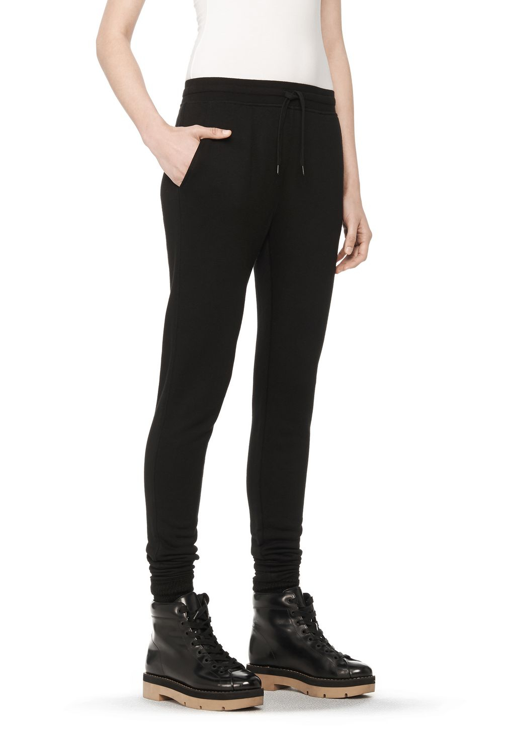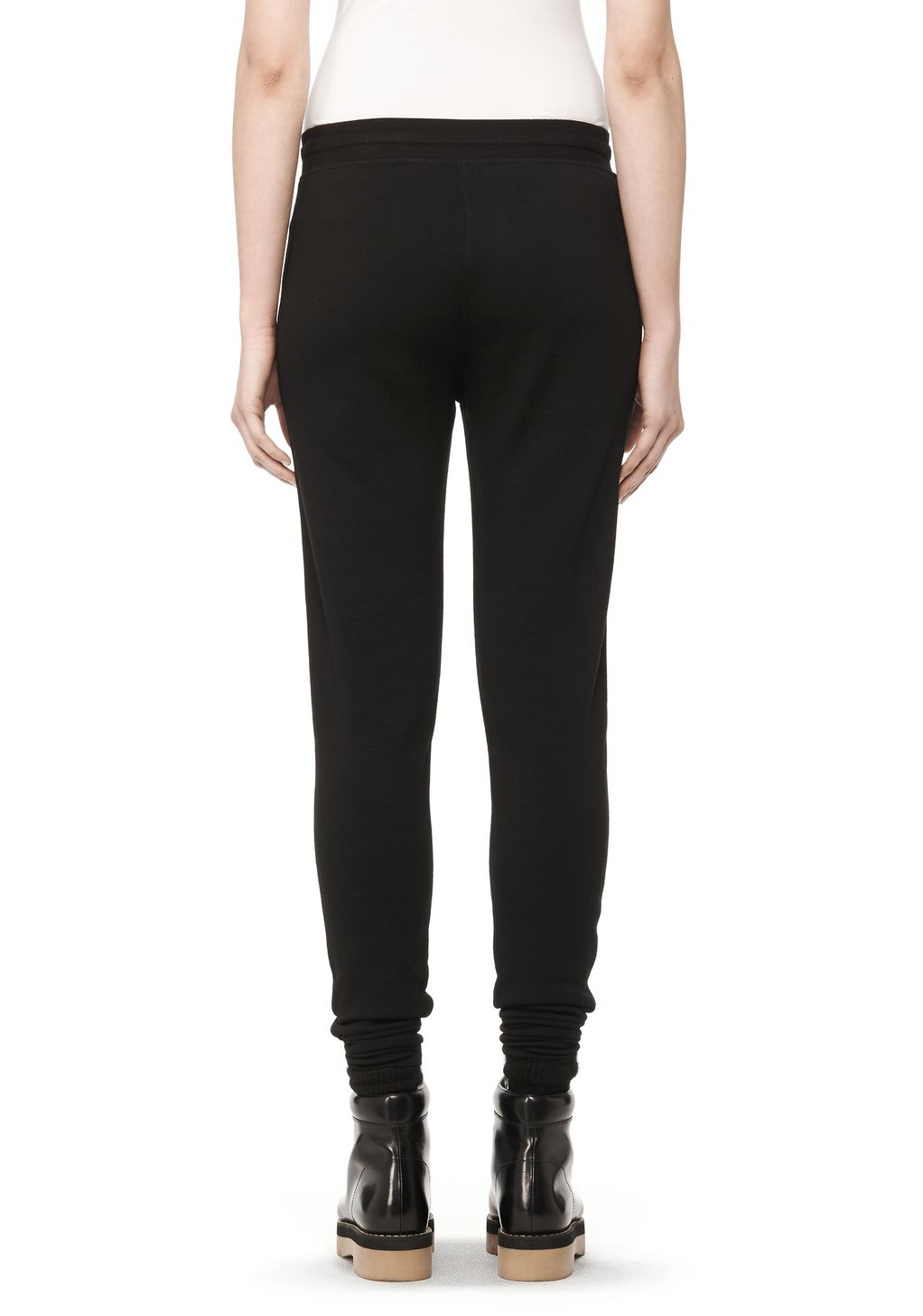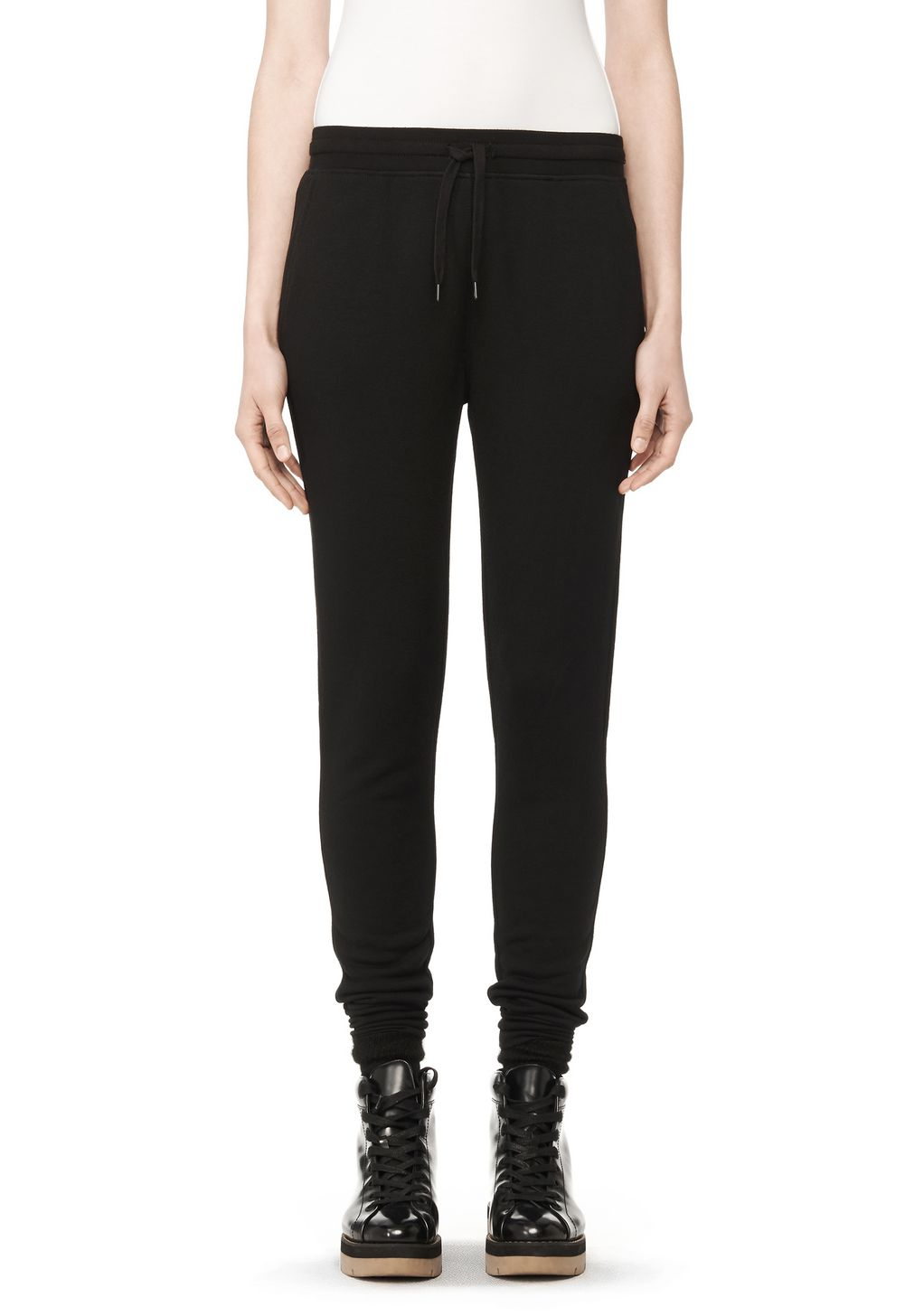 Go to Alexander WangLightweight washed french terry sweatpants with self ribbed drawstring waistband, ribbed hem cuffs, and two side pockets. 53% modal 35% cotton 12% polyester. This item runs true to size with a relaxed fit. Measures: 40" (102 cm) long with a 28" (71 cm) inseam. Machine wash cold, gentle cycle. Do not bleach. Lay flat to dry. Cool iron if needed. Or dry clean. Colour: black