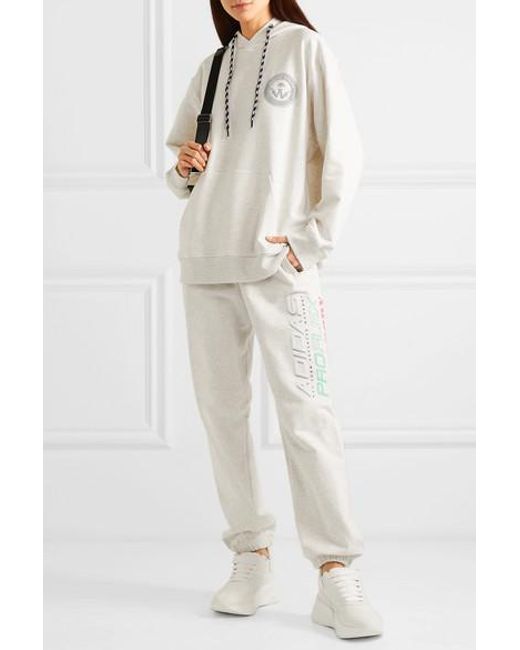For his latest collaboration with adidas Originals, Alexander Wang looks to '80s American sportswear for inspiration. Cut from cotton-terry that's cozy but breathable, these track pants are decorated with retro logo prints and the iconic Trefoil appliqué. They have a comfortable drawstring waistband and relaxed fit with elasticated cuffs. Team them with a ribbed tank and the matching hoodie. Light-gray cotton-terry. Pull on. 100% cotton. Machine wash. Colour: grey