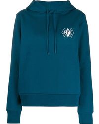 Violet cotton stretch logo print hoodie from A.P.C. featuring a drawstring hood, long sleeves and a straight hem. Colour: purple