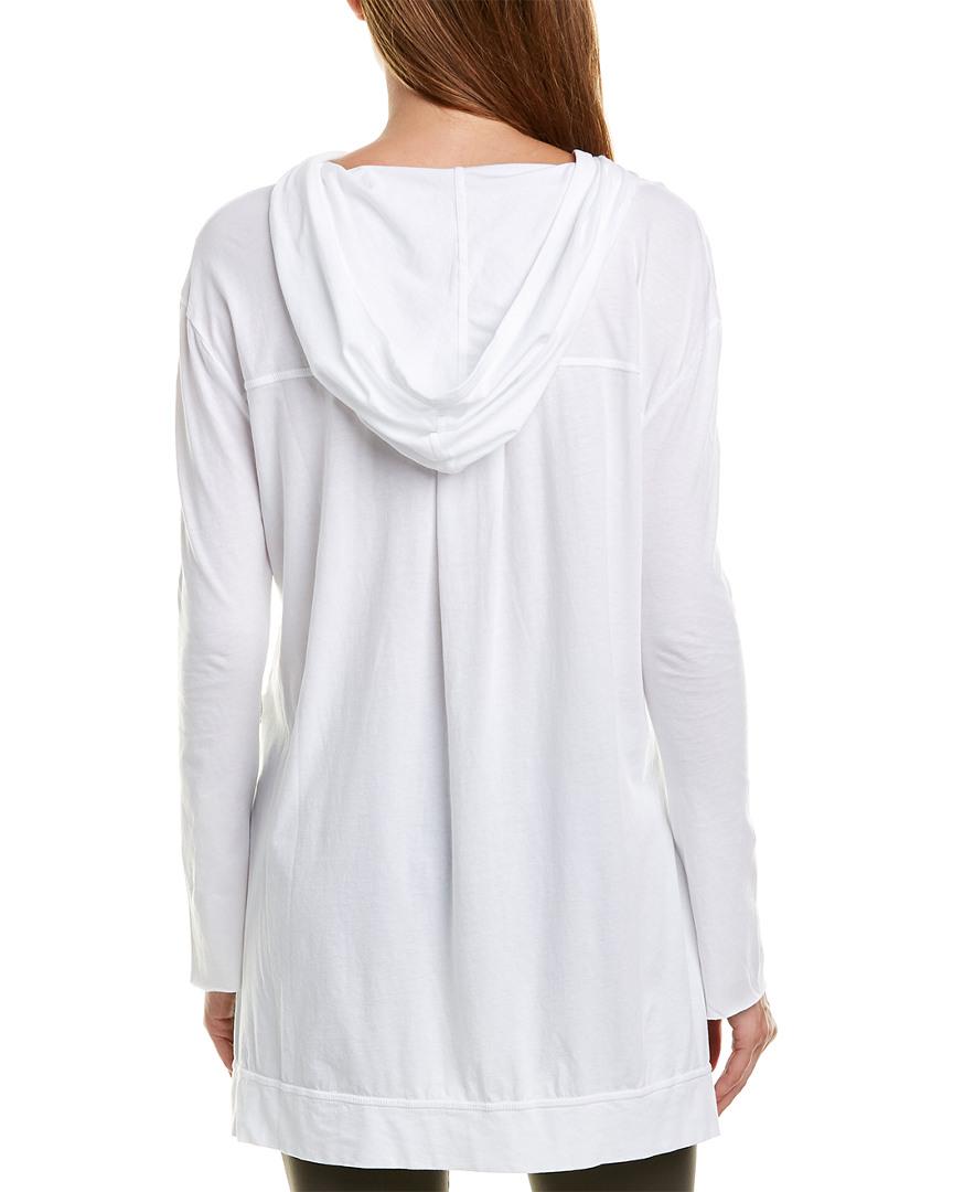 Go to Rue La LaColor/pattern: white Approximately 33in from shoulder to hem Measurement was taken from a size small and may vary slightly by size Design details: hooded back, dropped-shoulder sleeves, high-low hem, slits at side seams, box pleat 100% cotton Machine wash Made in the USA. Colour: white