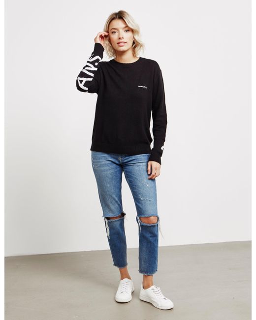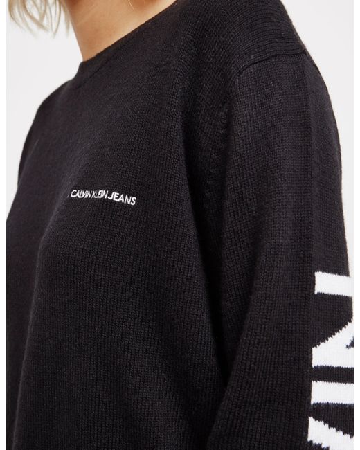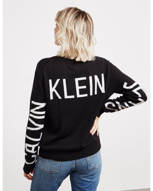 Founded in 1968, calvin klein jeans is a youthful and understated brand which provides sport and leisure wear with a contemporary twist to ensure that you can always look your best. Keeping you looking good in your downtime, the brand presents this womens institutional back logo sweater in a black colourway with a white branding so your style will stand out this season. Details; black colourway, wool knit construction, regular fit, ribbed crew neck, cuffs and hem, long sleeves, tonal stitching throughout and branding to the chest, back and sleeves to complete. Model is 5'9" and wears a size 8. Colour: black