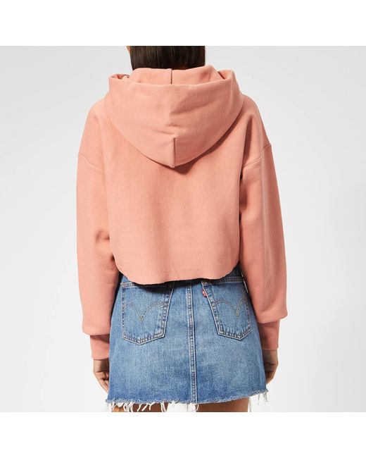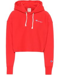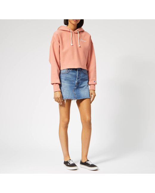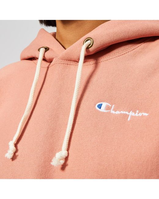 Champion Cropped Women's Hoodie, made from 100% cotton, includes an elasticated hem, crew neck, ribbed and elasticated cuffs, Finished with the classic Champion woven logo. Pink. 88% Cotton, 12% PolyesterModel is 174cm/5'8.5 and wears a size S. Colour: pink
