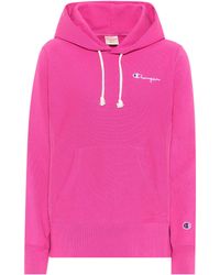 Champion Cropped Women's Hoodie, made from 100% cotton, includes an elasticated hem, crew neck, ribbed and elasticated cuffs, Finished with the classic Champion woven logo. Pink. 88% Cotton, 12% Polyester. Model is 174cm/5'8.5" and wears a size S. Champion Cropped Women's Hoodie, made from 100% cotton, includes an elasticated hem, crew neck, ribbed and elasticated cuffs, Finished with the classic Champion woven logo. Pink. 88% Cotton, 12% Polyester. Model is 174cm/5'8.5" and wears a size S.
