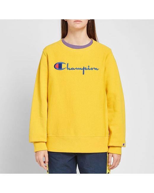 Taking summery hues with them into the colder seasons, Champion welcomes their crew in bright yellow this season, sure to turn heads wherever you go. Detailed with bold heritage branding at the centre chest, the sweat is a signature style that sees its return in fresh colourways each season. 100% Cotton Reverse Weave FabricFleeceback Jersey Embroidered Branding 'C' Appliqué Ribbed Trims. Colour: yellow