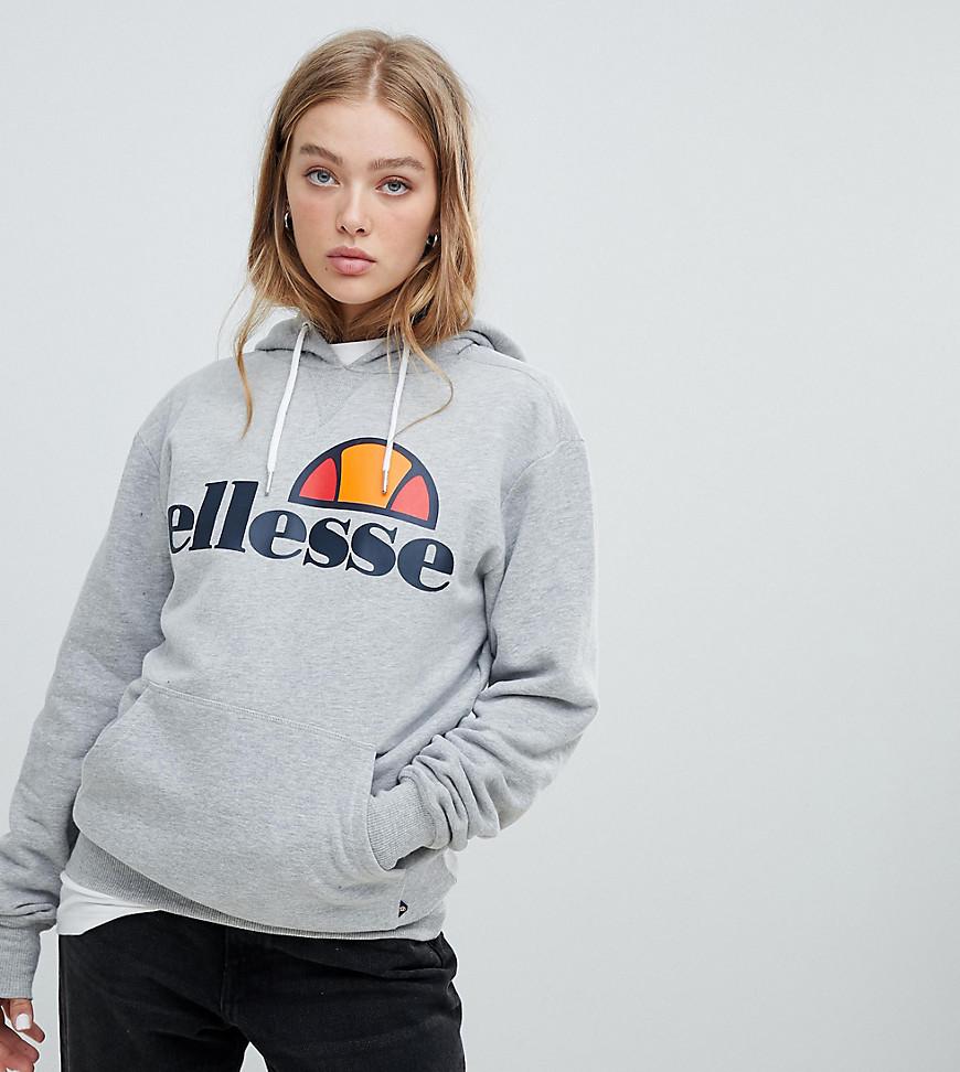 Hoodie by Ellesse, Soft-touch sweat, Drawstring hood, Ellesse logo print to chest, Pouch pocket, Ribbed cuffs and hem, Relaxed boyfriend fit. Remember the '90s when you weren't anyone if you didn't own an ellesse sweatshirt? Well, streetwear fans take note because we've come full circle and the Italian brand is back in a big way. Crop tops, sweatpants and track jackets get the iconic ellesse logo treatment. Cotton/ polyester/ print. Colour: grey