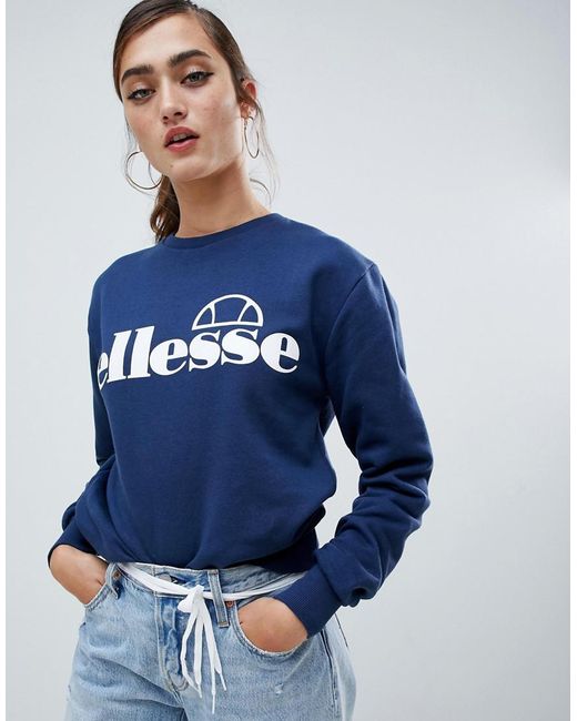 Sweatshirt by ellesse, For when comfort is key, Crew neck, Logo design, The bigger the branding, the better, Fitted trims, Relaxed boyfriend fit, Just a little looser. Remember the '90s when you weren't anyone if you didn't own an ellesse sweatshirt? Well, streetwear fans take note because we've come full circle and the Italian brand is back in a big way. Crop tops, sweatpants and track jackets get the iconic ellesse logo treatment. Cotton/ polyester. Colour: blue