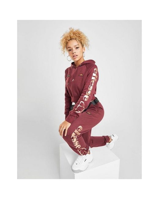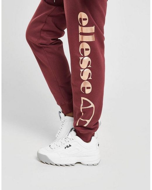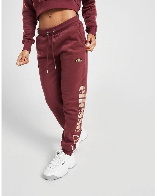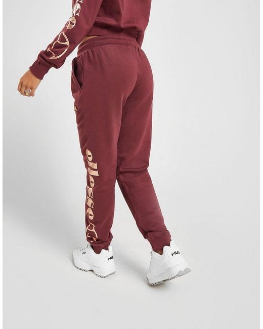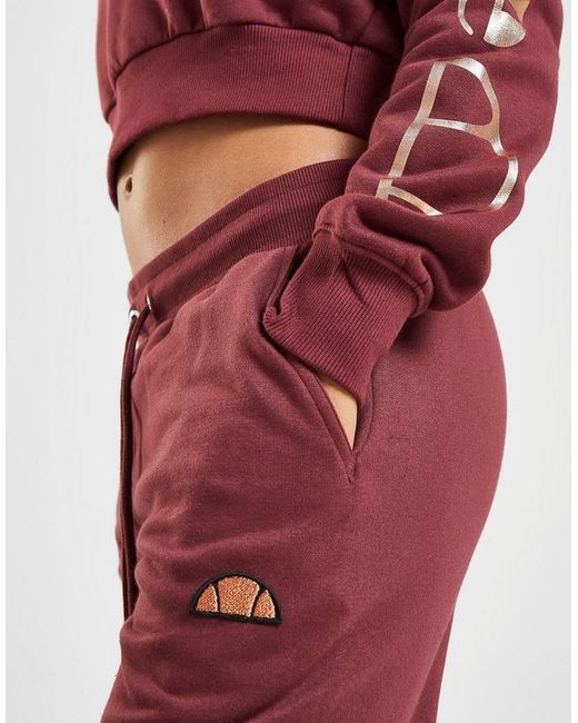 On chilled days, keep comf in these women's Logo Sweatpants from Ellesse. In a Wine colourway, these JD-exclusive sweatpants are made from soft cotton fleece with a cozy, brushed-back inner. They're cut for a regular fit and feature ribbed cuffs and an elasticated waistband with an adjustable draw cord for a custom feel. With two side pockets, these pants are finsihed up with the iconic logo embroidered to the thigh, as well as Ellesse branding stamped to the leg in a metallic, rose gold finish. Machine washable. Our model is 5'4" and wears a size 8. Material: 85% Cotton/15% Polyester. Colour: red