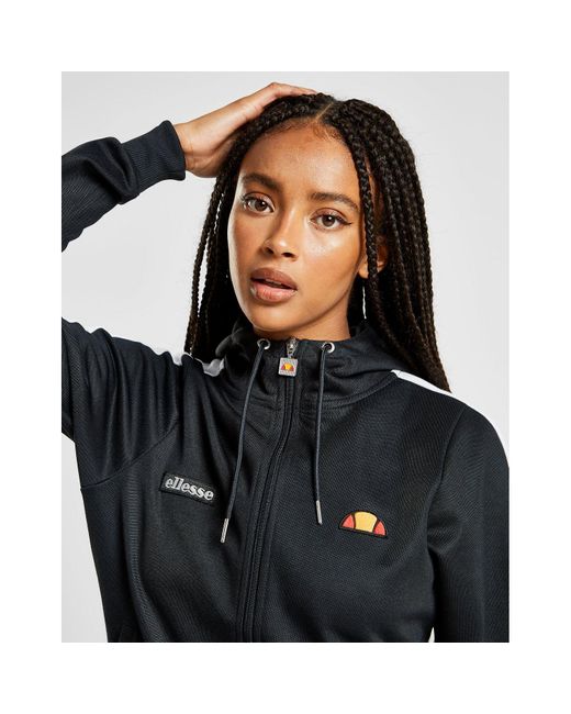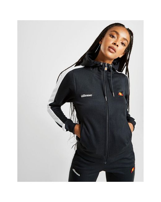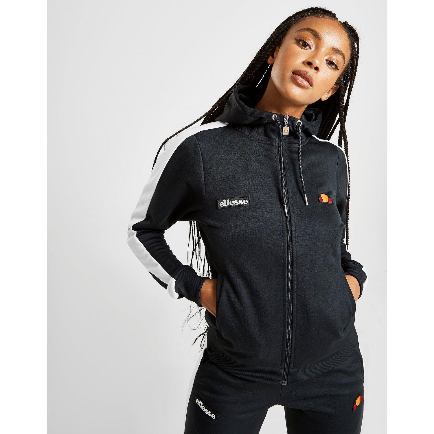 Exclusive to JD. Take your retro style to the next level and grab a fresh look for the weekends with this women's Tricot Stripe Full Zip Hoodie from Ellesse. In a black colourway with contrasting white stripe detailing to the sleeves, this hoodie is made from soft poly to keep you covered and comfy. Coming with a full front zip, adjustable hood, and side pockets, this hoodie has ribbed trims for the perfect fit. Finished with Ellesse branding to the chest. Colour: black