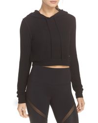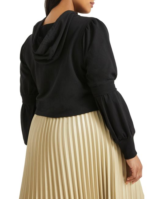 Tiered puff sleeves bring a delightfully unexpected touch of romance to this cotton French terry hoodie cut to a cute, cropped length. Colour: black