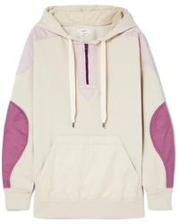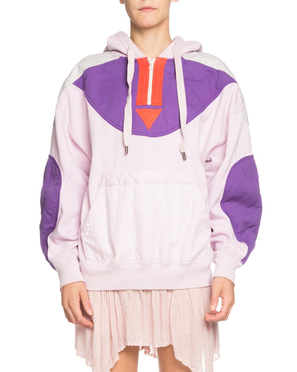 Etoile Isabel Marant "Nansel" hoodie with colorblock panels. Drawstring hood; quarter-zip front. Long sleeves. Dropped shoulders. Kangaroo pocket. Relaxed fit. Pullover style. Cotton/polyester. Made in Portugal.