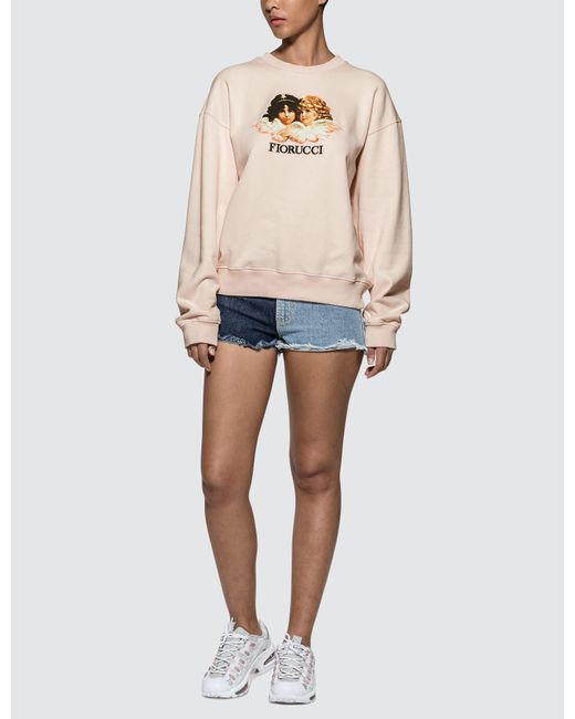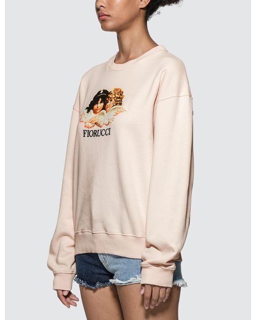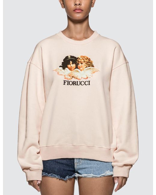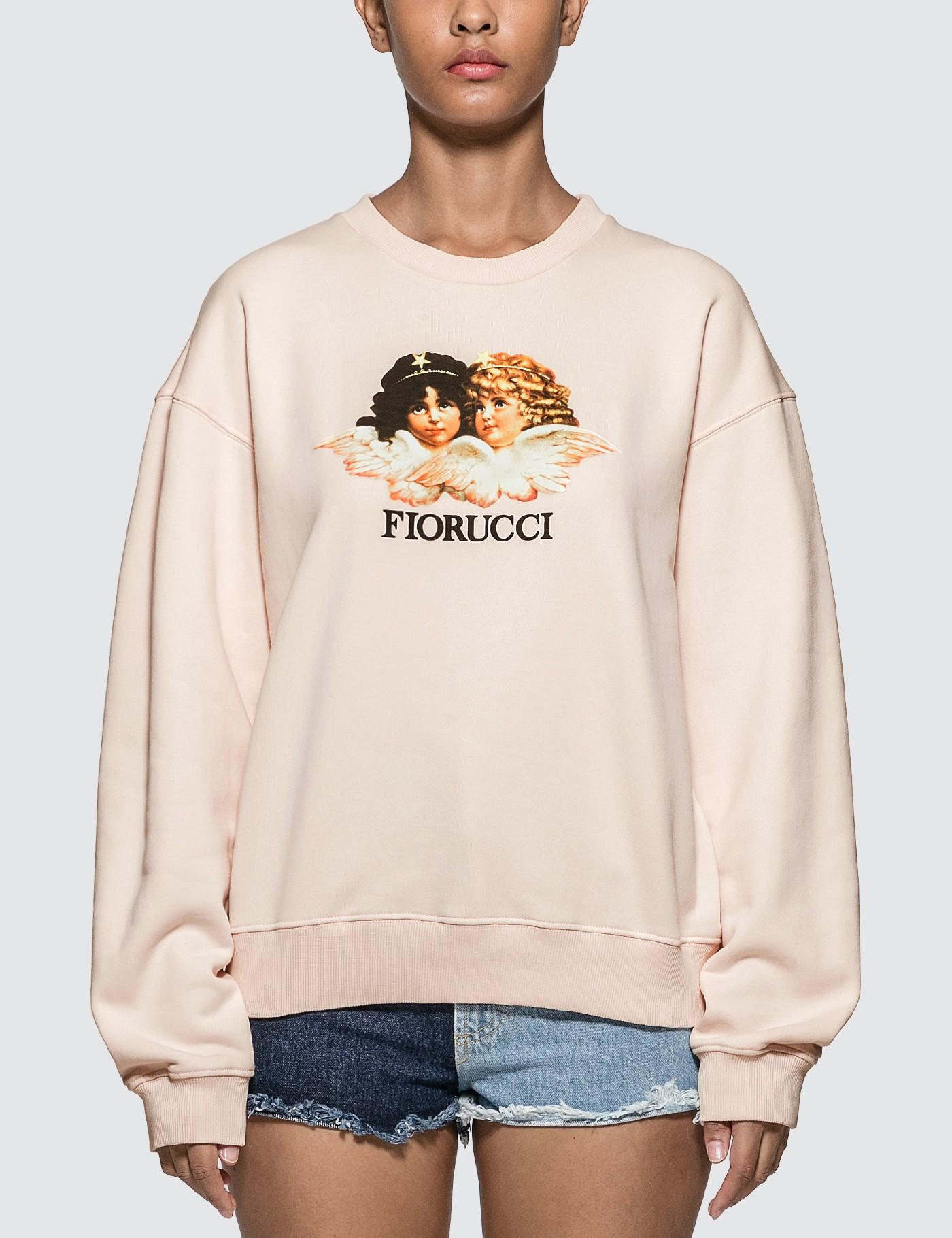 Fiorucci- Vintage Angels Sweatshirt- Ribbed crewneck, cuffs and hem- Vintage Angels print at front- Oversized fit- 100% Cotton- Color: Pale Pink- See more Sweatshirts and Clothing". Colour: pink