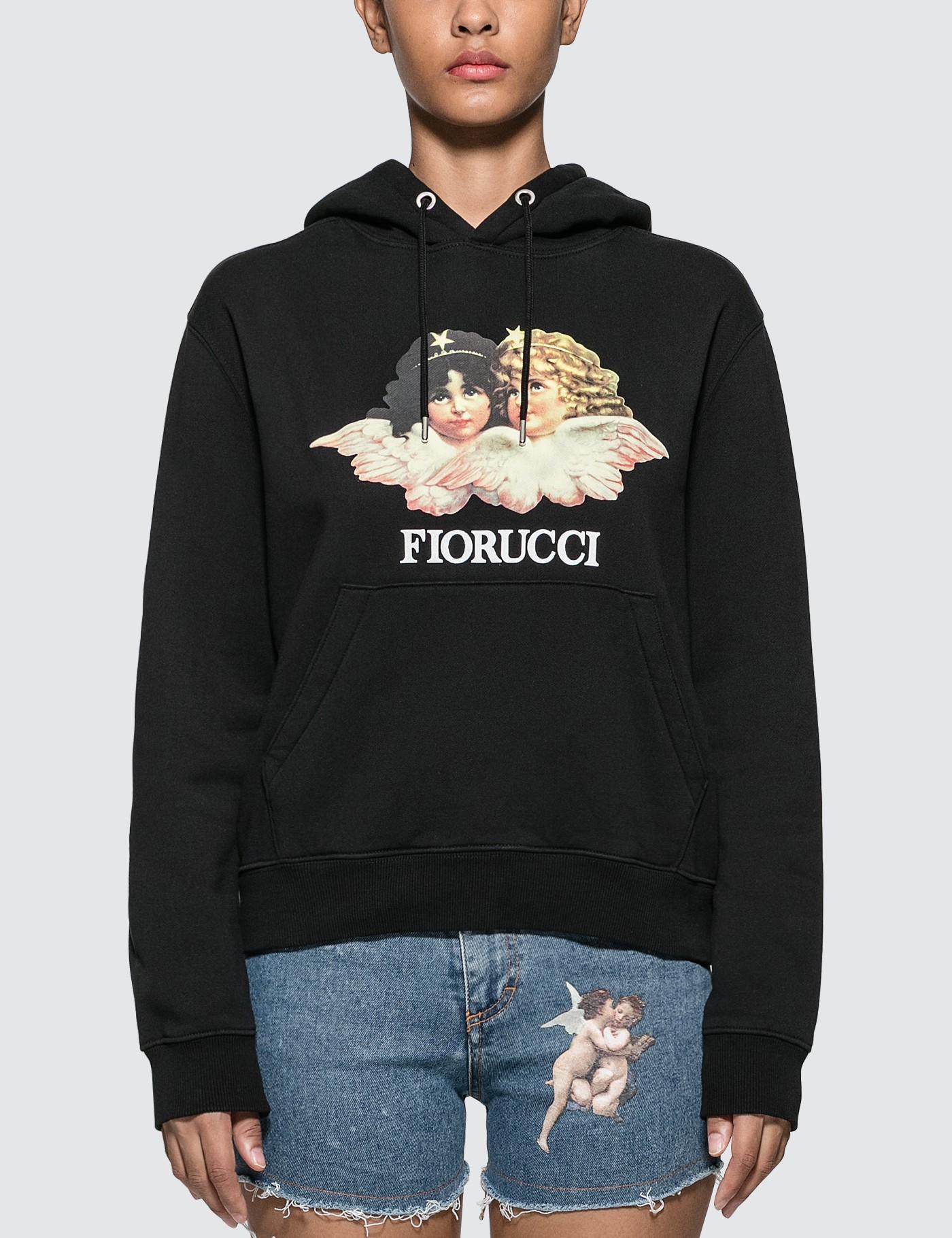 Fiorucci- Vintage Angels Hoodie- Drawstring hood- Kangaroo pocket- Vintage Angels print at front- Ribbed cuffs and hem- Regaular fit- 100% Cotton- Color: Black- See more Hoodies and Clothing". Colour: black