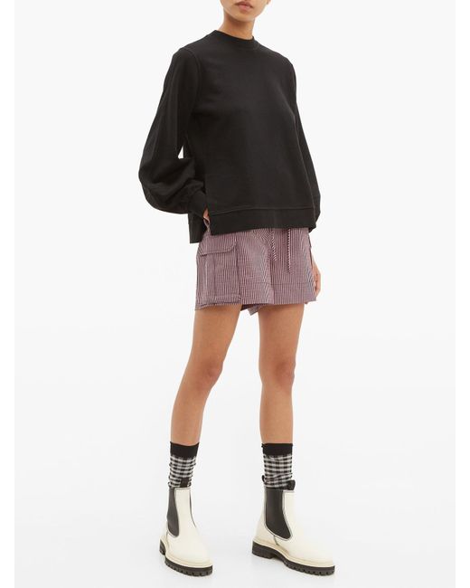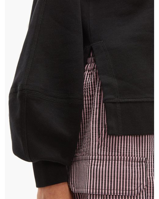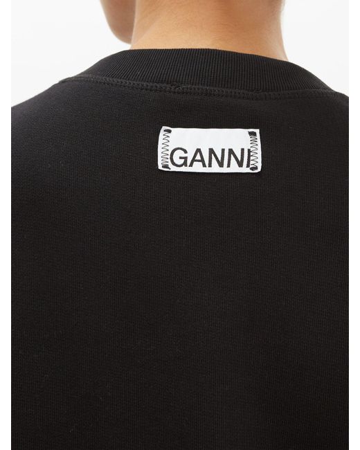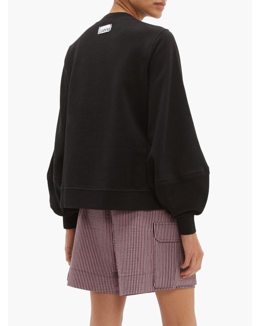 Ganni - ganni's black panelled isoli sweatshirt is shaped with balloon sleeves for a feminine take on a streetwear favourite. It's made from fleece-back cotton jersey for a relaxed fit that's enhanced with small side slits at the hem. Wear it with shorts and ankle boots to channel the label's effortless weekend styling. 100%cotton.
