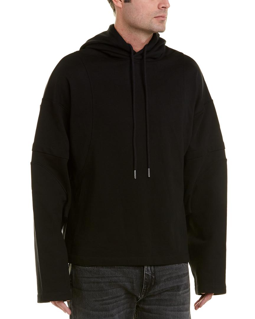 Color/pattern: black. Approximately 26in from shoulder to hem. Measurement was taken from a size medium and may vary slightly by size. Design details: drawstring hood, distorted sleeves with cutouts at armpits. 100% cotton. Machine wash. Colour: black