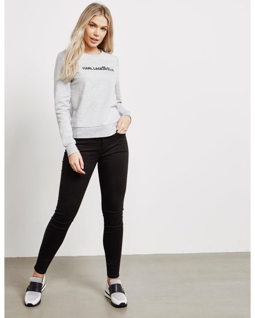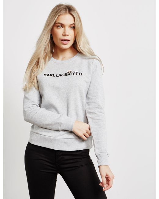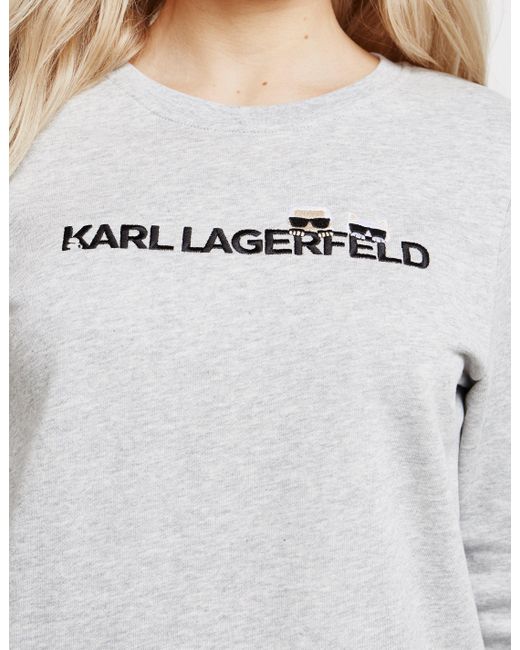 Cutting edge fashion is at the centre of karl lagerfelds fashion ethic, creating aesthetic and relevant rock-chic designs that fill your closet with inspiration and style. Applying this to every aspect of the brand, they present this women's ikon logo sweatshirt which comes in a grey colourway and features iconic karl embroidered branding to the chest for a stand out staple for your casual closet. Details; grey colourway, overhead style, ribbed crew neck, cuffs and hem, tonal stitching throughout, regular fit, printed branding to the back hem and embroidered logo to the chest to finish. Model is 5'9.5" and wears a size 8. Colour: grey