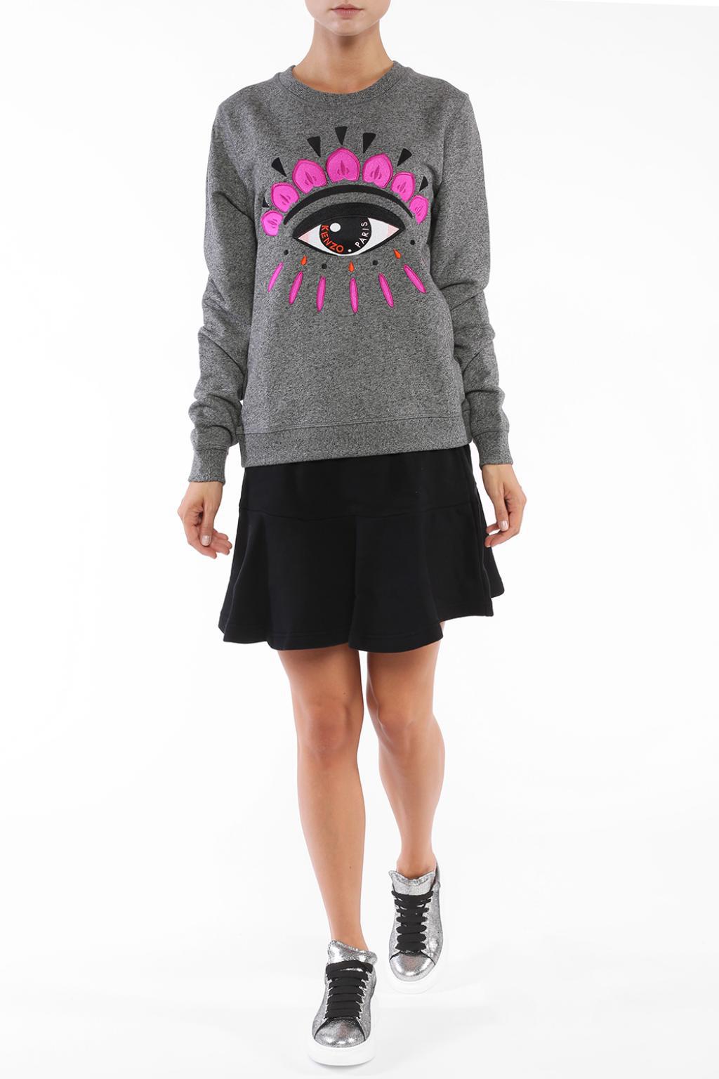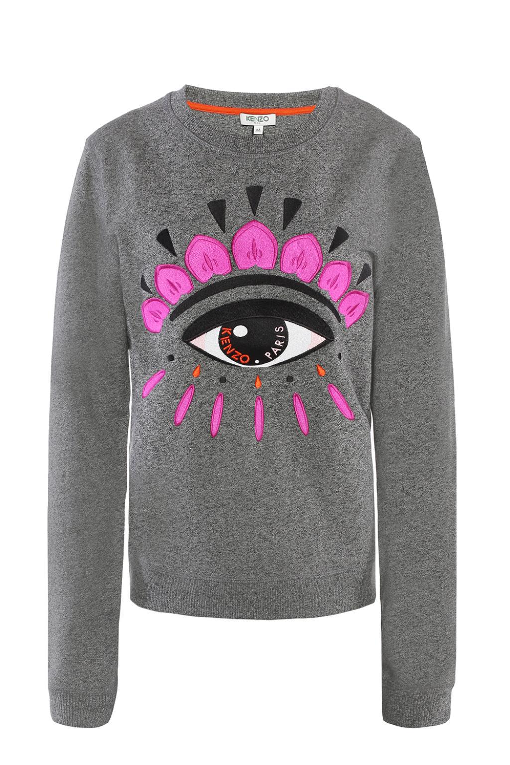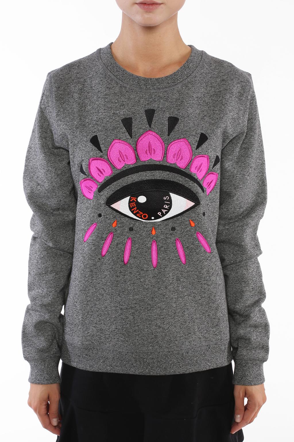 Go to VITKACGrey cotton sweatshirt from Kenzo. Embroidered black, white and pink signature motif of eye on the front. Round neck. Elasticated collar, hem and cuffs. 100% Cotton. Model's Measurements. Height: 176cm. Bust: 85cm. Waist: 60cm. Hips: 89cm. Model is wearing size: M. Colour: grey