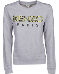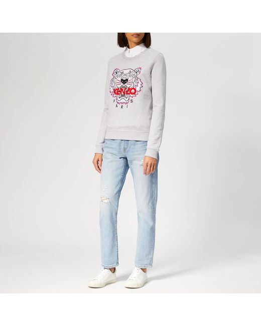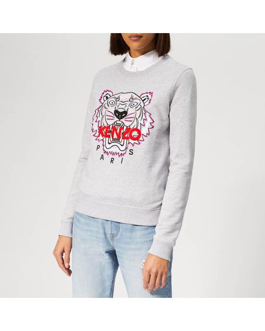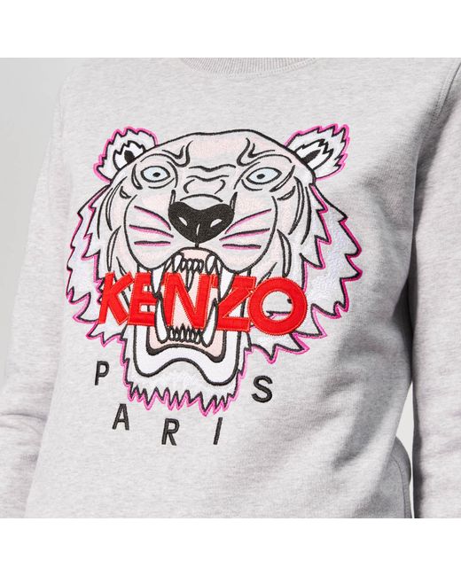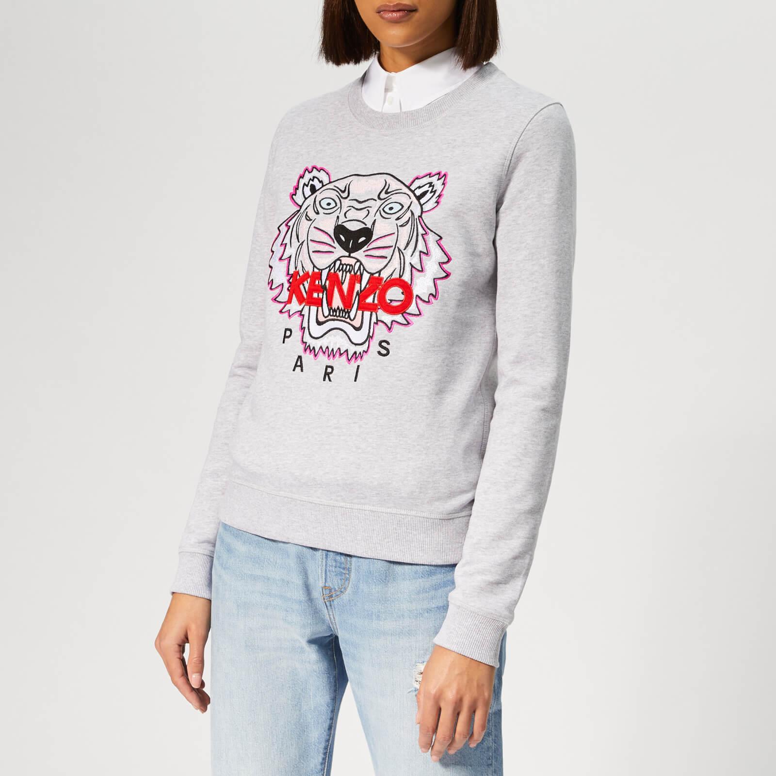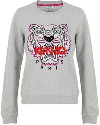 Grey sweatshirt from Parisian label KENZO. Presented in soft cotton, the sweater features a round neck, long sleeves and ribbed trims at the collar, cuffs and hem. A large embroidered tiger motif at the chest adds a signature finishing touch. 100% CottonModel is 174cm/5'8.5 and wears a size S. Colour: grey