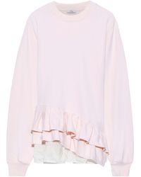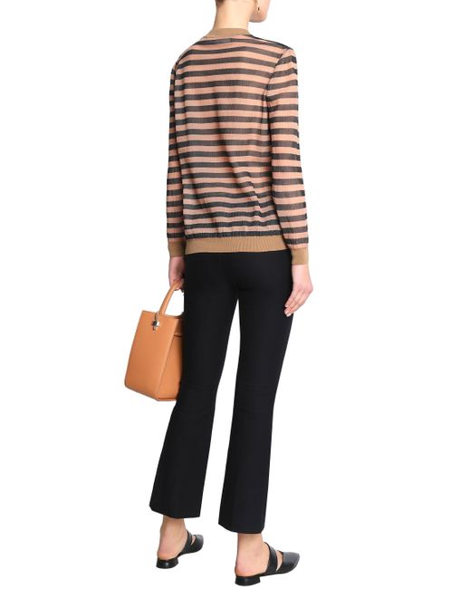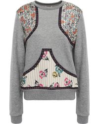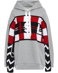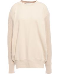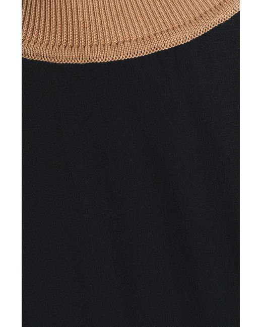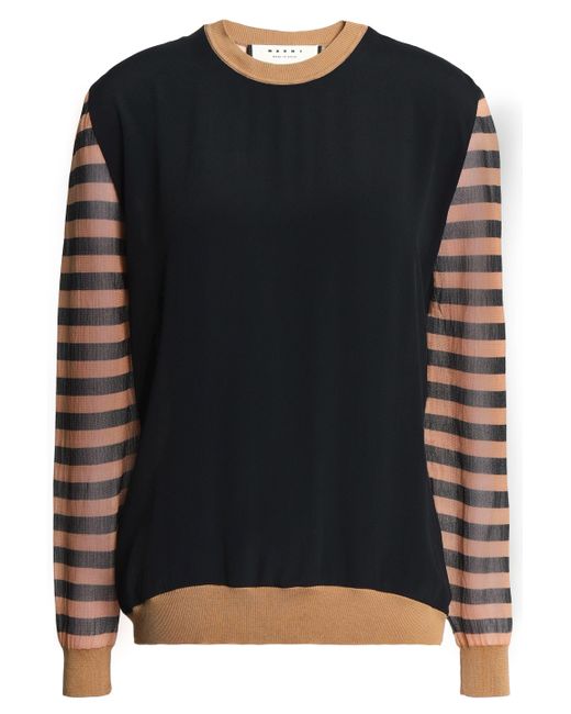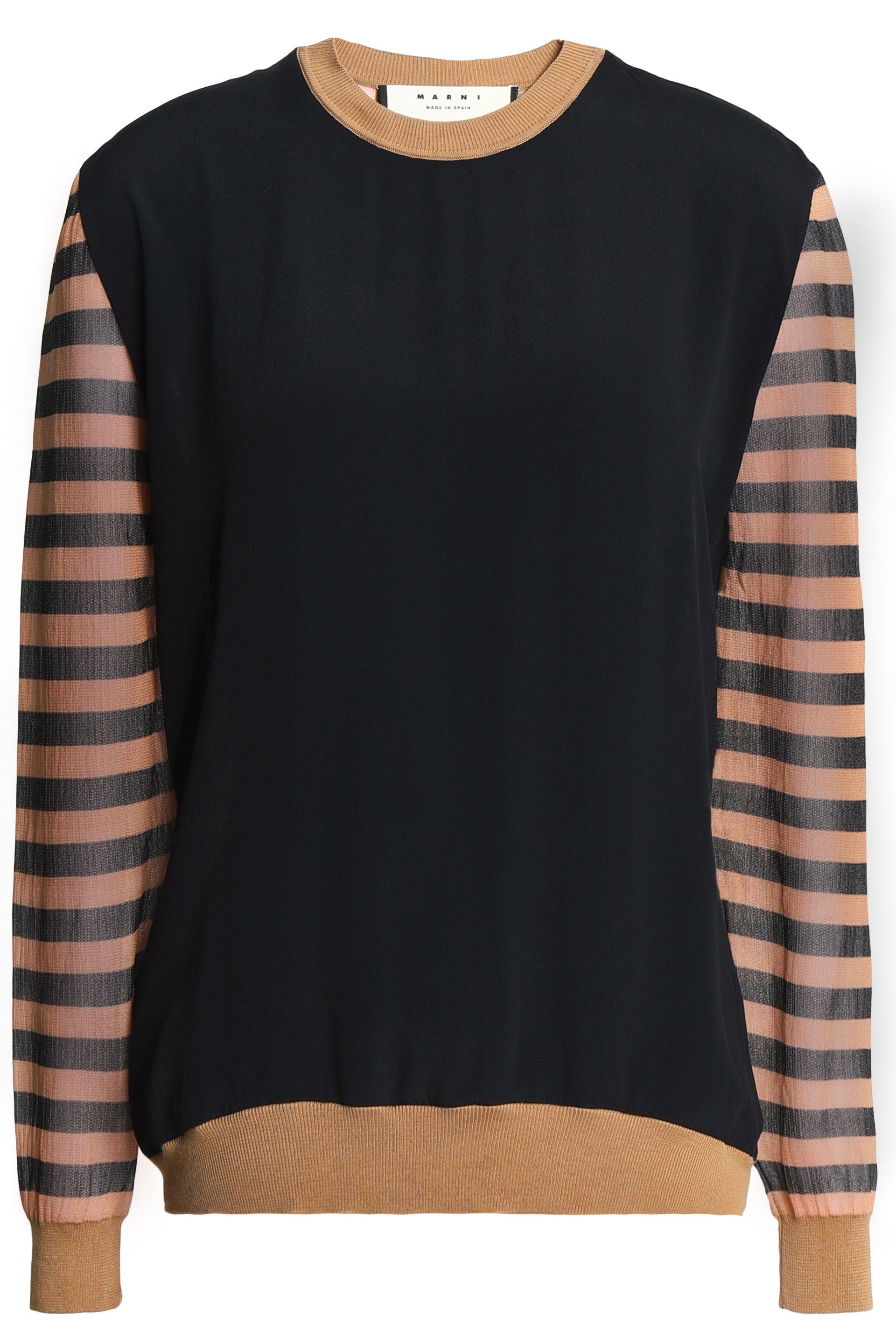 Women's Striped Crepe De Chine-paneled French Terry Sweatshirt Black