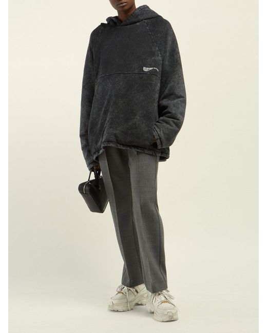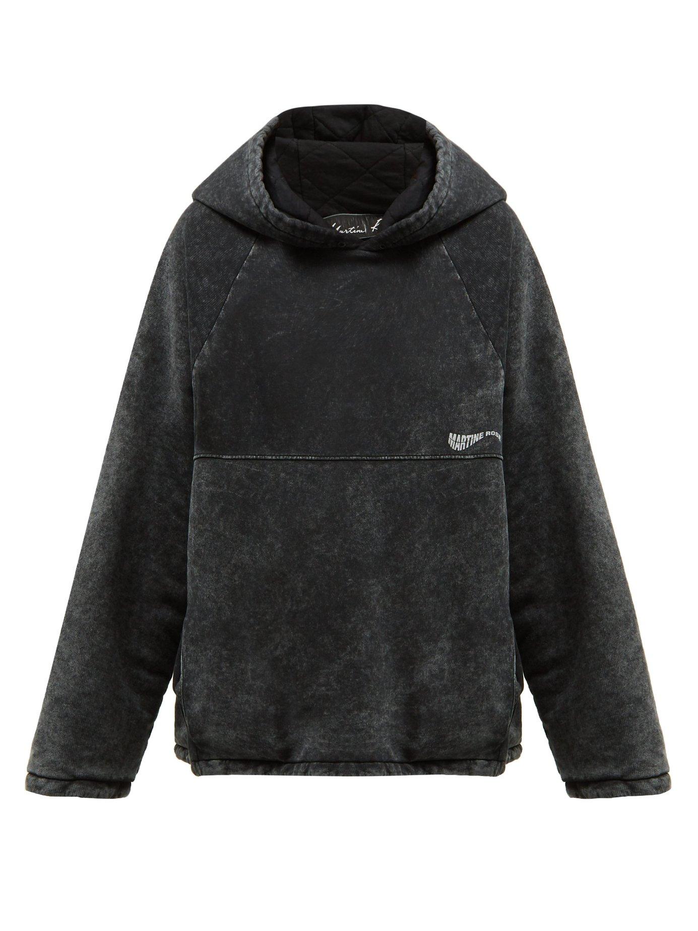 Martine rose - the oversized silhouette of this black cotton-jersey hooded sweatshirt cites martine rose's androgynous approach to streetwear codes. With a distressed washed-out feel, it features a cosy black quilted lining and is punctuated by a white curved logo on the chest. Shrug it on for a relaxed mood at the weekend. 100% cotton.