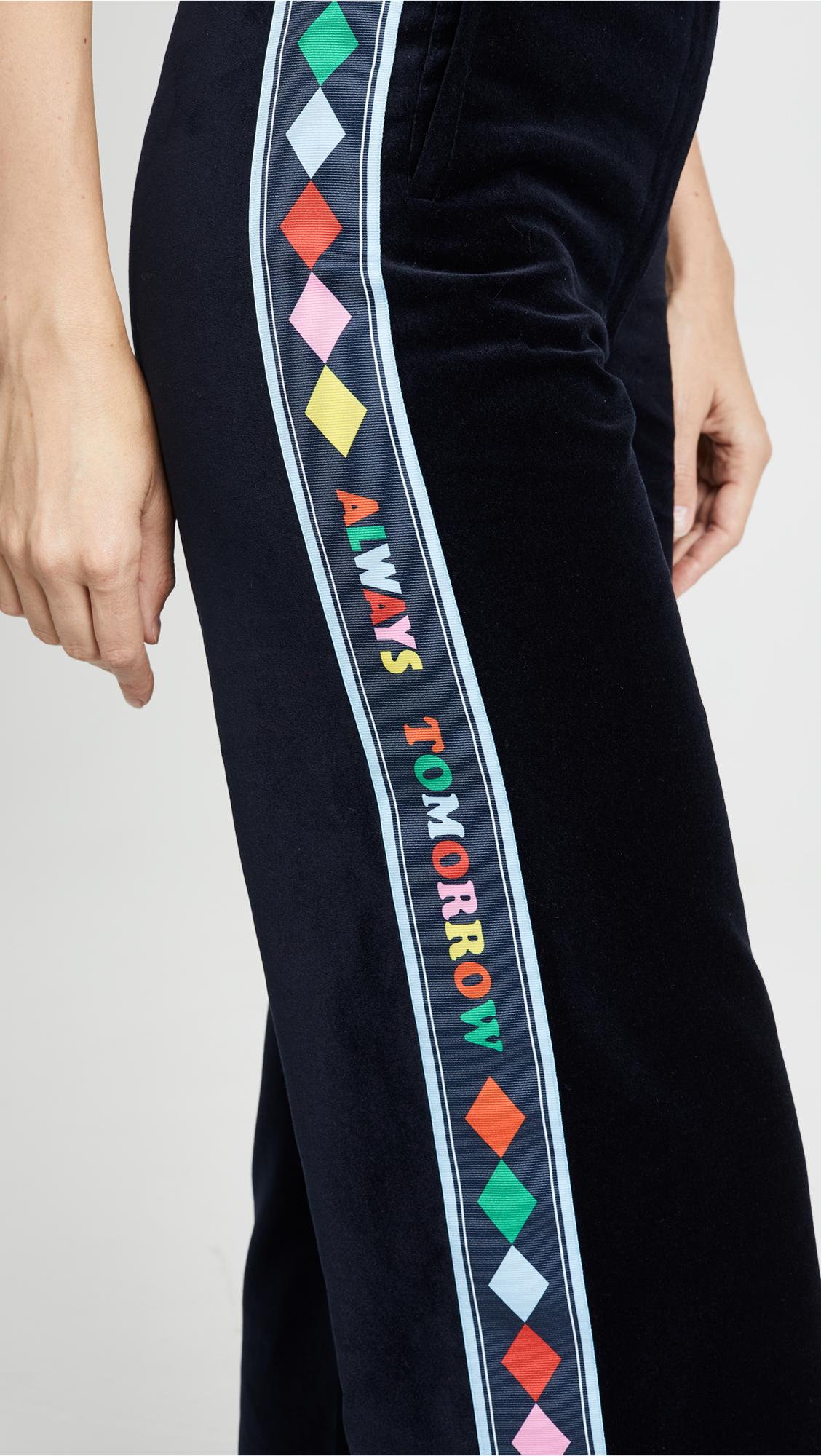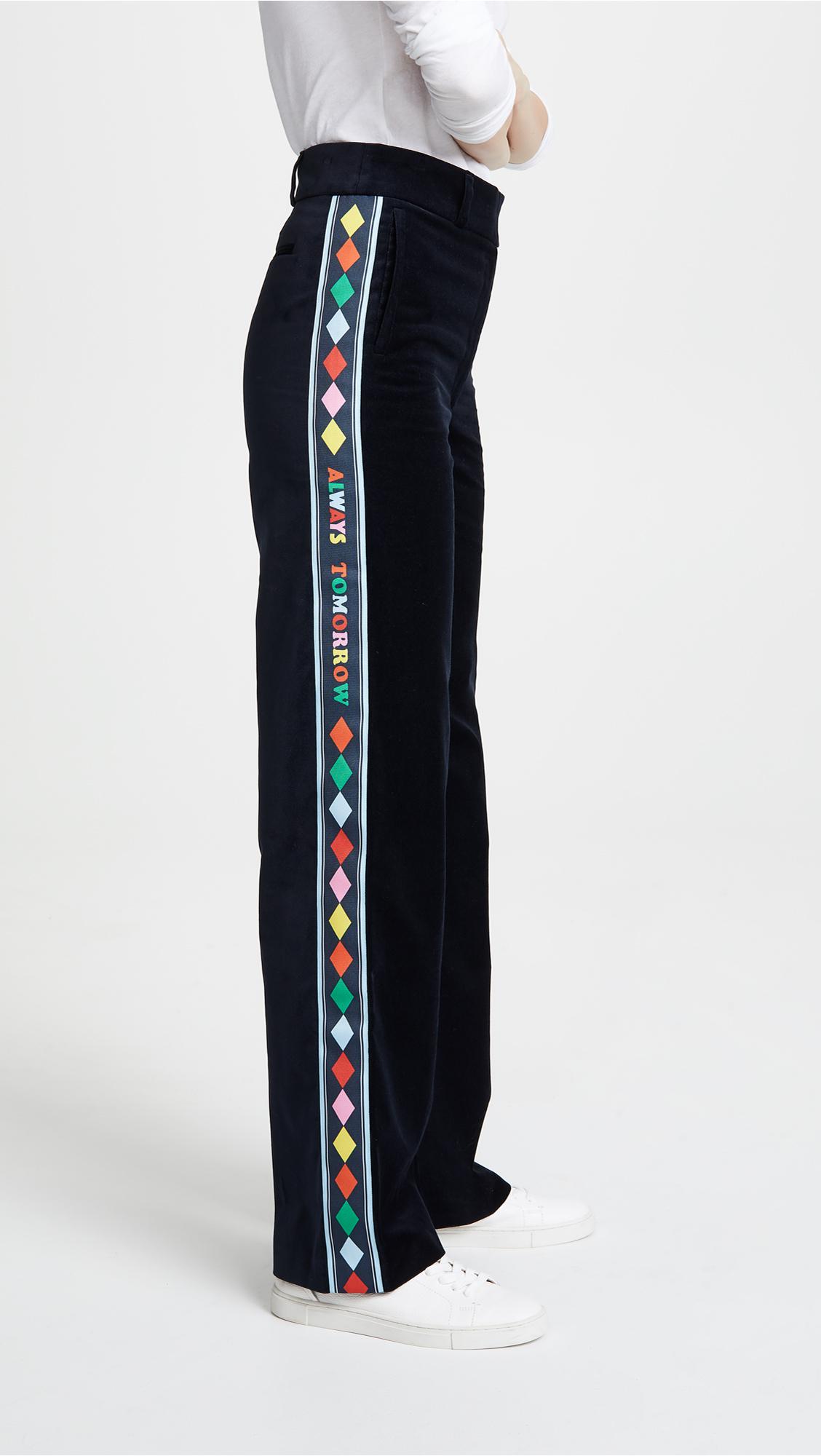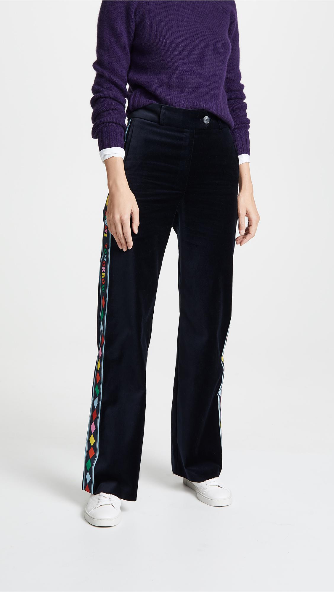 Go to ShopbopFabric: Velvet. Printed grosgrain trim with 'Always Tomorrow' lettering. Wide-leg cut. Full length. Zip at fly. Slant hip pockets. Welt back pockets. Shell: 100% cotton. Dry clean. Style #CMIRA30239. Rise: 12.25in / 31cm. Inseam: 31.5in / 80cm. Leg opening: 20.5in / 52cm. Colour: blue