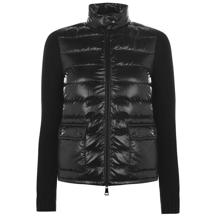 Moncler Padded Tricot JacketUpgrade your outwear collection with this Moncler Padded Tricot Jacket. Crafted with Virgin wool this lightweight jacket offers a great casual alternative style to the rest of your closet and features a padded front, ribbed trim, long sleeves, full zip closure, buttoned front pouch pockets, a funnel neck with a button. This jacket is finished with the signature Moncler arm patch. Size selection: standard sizingFits true to size, take your normal sizeZip closureButton pocketsFunnel neckPadded frontMoncler arm patchBase: 100% Virgin WoolOuter front: 100% PolyamideDo not wash BLACK 999 8 (XS). Colour: black
