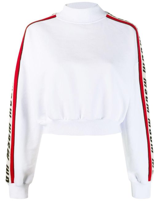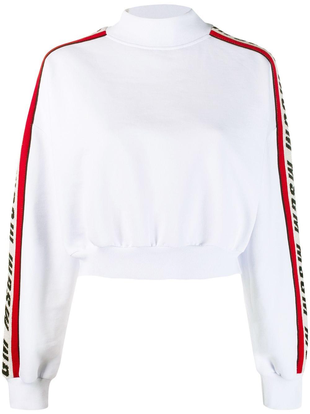 A youthful energy and playful spirit is what Italian brand MSGM encaptures in its collections. Inspired by art and modern culture, the MSGM brand creates an exciting new aesthetic which intrigues the eye and which has kindled a worldwide following. Update your casualwear portfolio with this white cotton logo stripe sweatshirt from MSGM. Featuring a mock neck, long sleeves with a logo stripe detail, a cropped length and a ribbed hem and cuffs. Material:Cotton. Colour: white