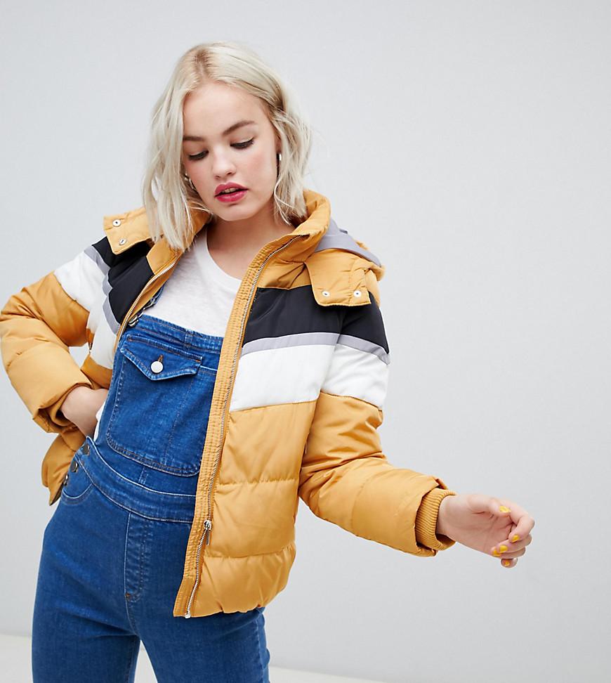 Go to ASOSJacket by New Look, Feel the benefit, Fully lined, Padded for extra warmth, Colour-block design, Hooded neck, Zip fastening, Regular fit, No surprises, just a classic cut. Transforming the coolest looks straight from the catwalk into closet staples, New Look joins the ASOS round up of great British high street brands. Get it or regret it with its weekly drops of essential coats, statement partywear and sleek boots, from ankle to over-the-knee styles. Polyester. Colour: yellow