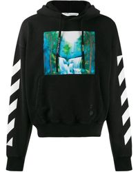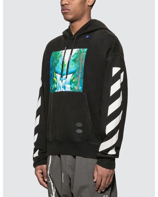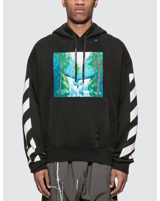 Off-White- Diagonals Waterfall Hoodie- Oversized fit hooded sweatshirt- Drawstring hood- Arrow graphic at back- Ribbed cuffs and hem- Diagonals printed at sleeves - Front Waterfall graphic print- Kangaroo pocket- Color: Black- 100% Cotton- See more Hoodies and Clothing".
