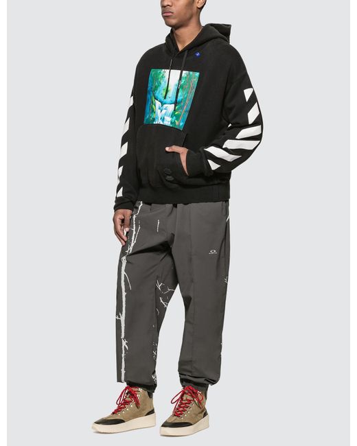 Combining its industrial aesthetic with a serene waterfall scene, Off-White delivers this oversized hoody in pure cotton jersey. Easy to pull on and go, the black piece is secured with a drawstring-adjustable hood and its Portuguese-made build is completed with comfortable ribbed trims. 100% Cotton. Oversized Fit. Drawstring Hood. Woven "A" Tab. Waterfall Print. Rubberised Brand Patches. Kangaroo Pouch Pocket. Arrows Back Print. Ribbed Cuffs & Hem. Made in Portugal.