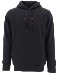 Palm Angels cotton jersey hoodie with fleece lining. It features a kangaroo pocket, print on the chest, "flames" on the sleeves. Relaxed fit. Model height is 182 cm and he is wearing a size M. Colour: black