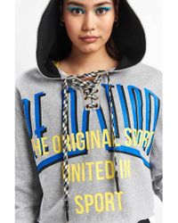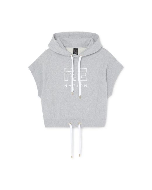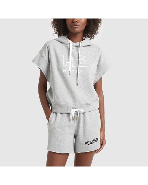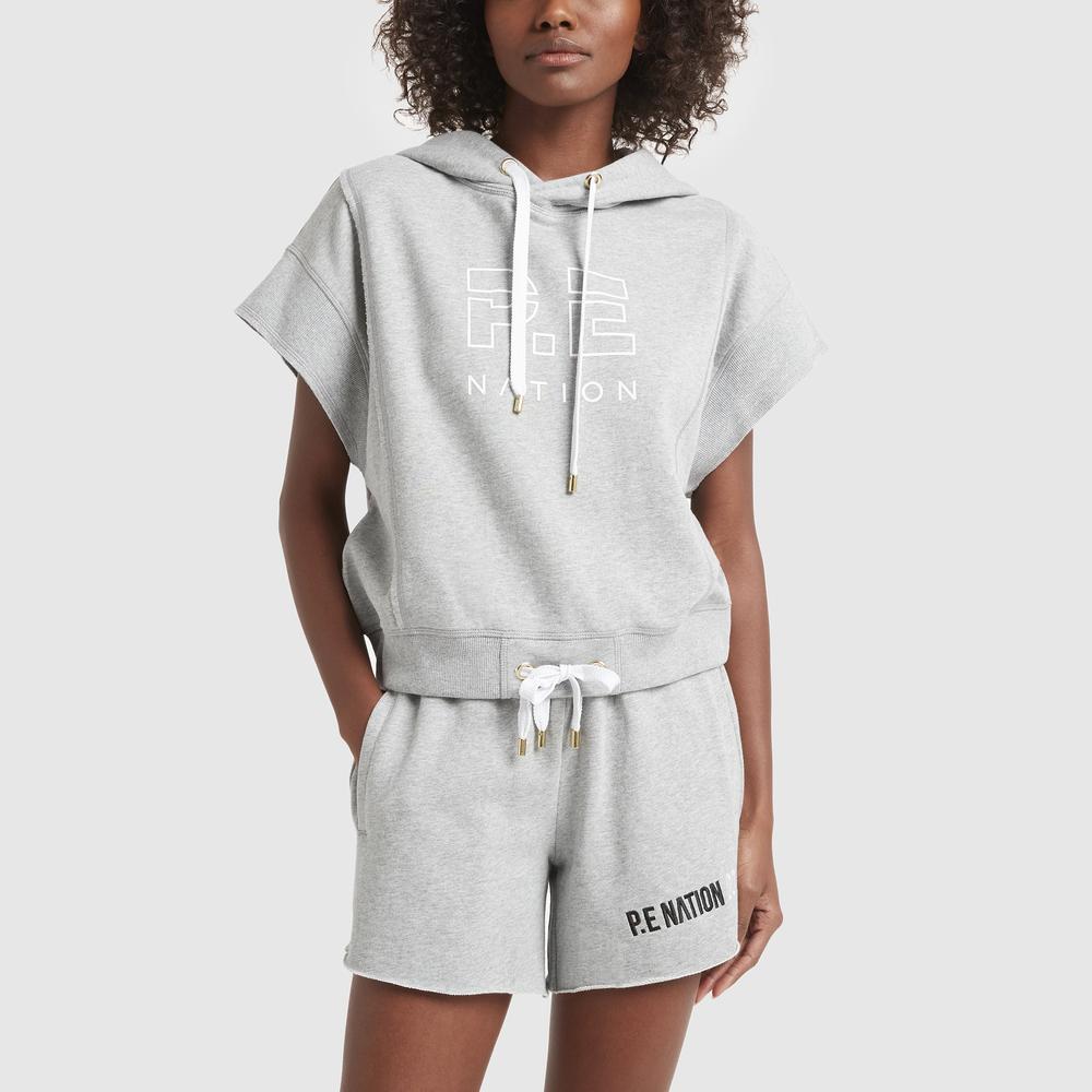 P. e. Nation free formation hoodie in grey light, x-small: half-hoodie, half-pinnie from your gym class days, this short-sleeved sweatshirt is the workout piece you didn't know you were missing. Not only are the capped sleeves really, really cute—they give you full range of motion for boxing class, too. Double down on the super-soft french terry and snag the lead right shorts while you're here. 100% french terry cotton machine wash model is 5'9.5" with 33" bust, 25" waist, 33.5" hips and wearing a size xs. Colour: grey