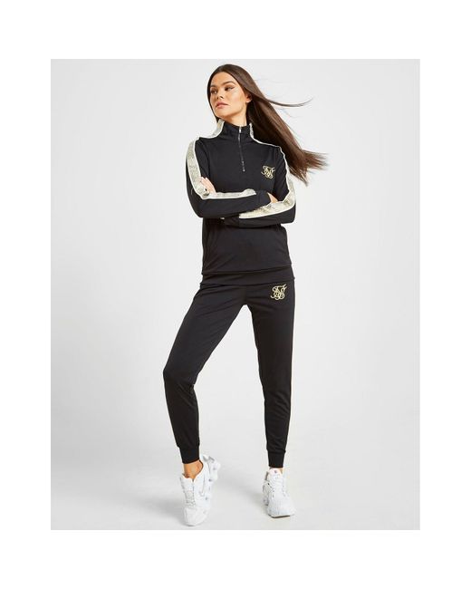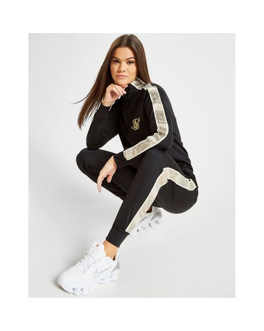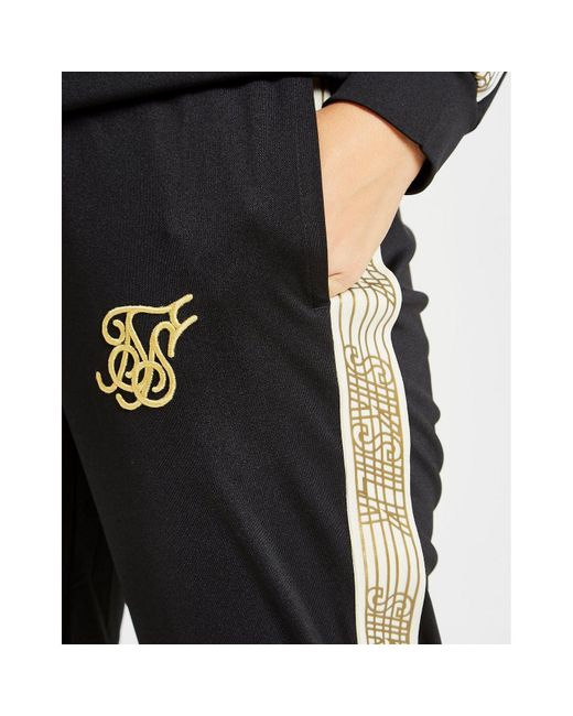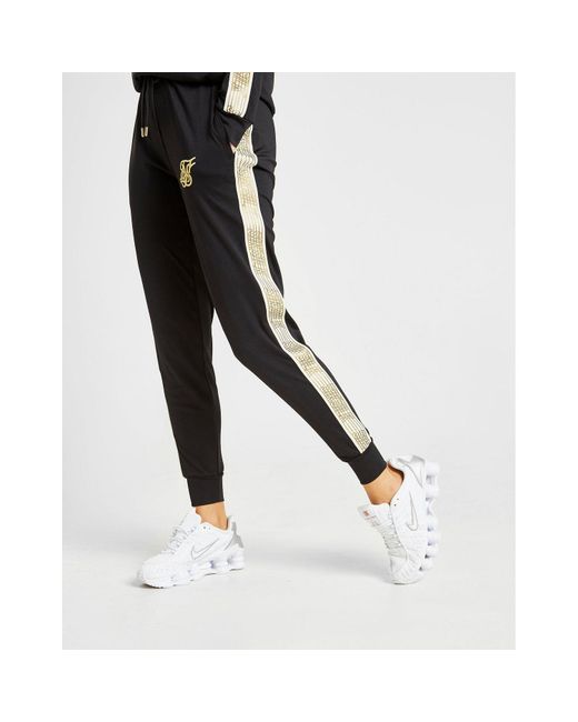 Get some standout style that'll make an impact on the streets with these women's Track Pants from SikSilk. In a black colourway, these track pants are made from stretchy poly to keep you covered and comfy. Coming in a regular fit, these track pants have ribbed trims for a secure wear. With contrasting white and gold branded taping to the sides, these track pants are finished with gold SikSilk branding to the left thigh. Our model is 5'7" and wears a size 8. Material: 95% Polyester/5% Elastane. Colour: black