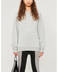 Women's Blue Stripes Zip-up Cotton Blend Sweatshirt