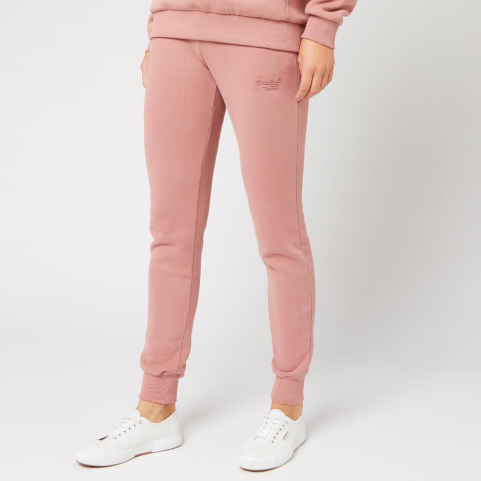 Pink Superdry joggers with a tonal rubberised logo print on the left leg. The cotton fleece sweatpants are finished with side pockets, a drawstring adjustable waist and ribbed hems. 72% Cotton, 28% Polyester. Pink Superdry joggers with a tonal rubberised logo print on the left leg. The cotton fleece sweatpants are finished with side pockets, a drawstring adjustable waist and ribbed hems. 72% Cotton, 28% Polyester.