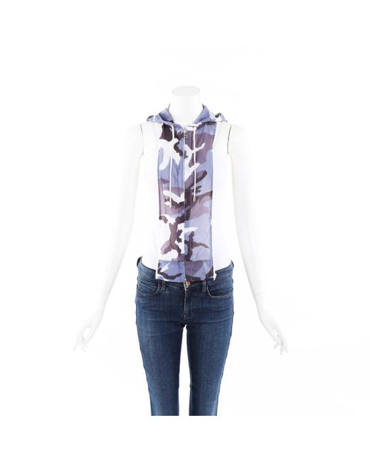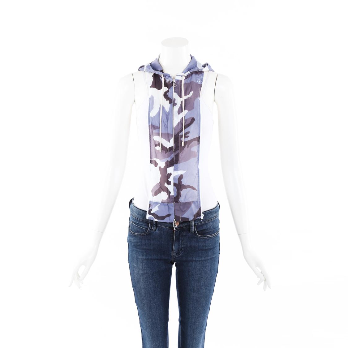 Veronica Beard camouflage printed dickie features a drawstring hood and a front zipper. Nylon/Polyamide. Colour: blue